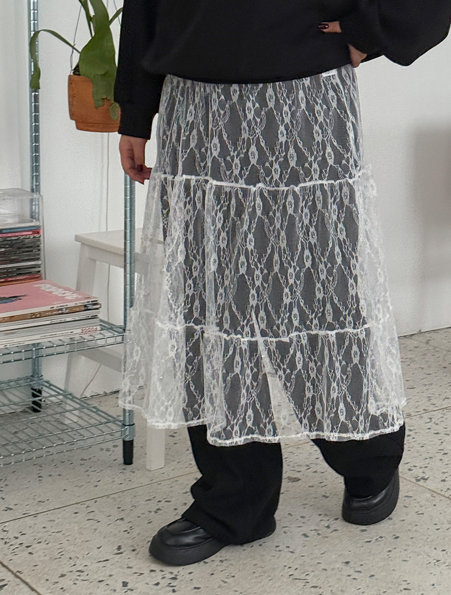 Lemondi See-through look layered Tiered Skirt | EVELLET