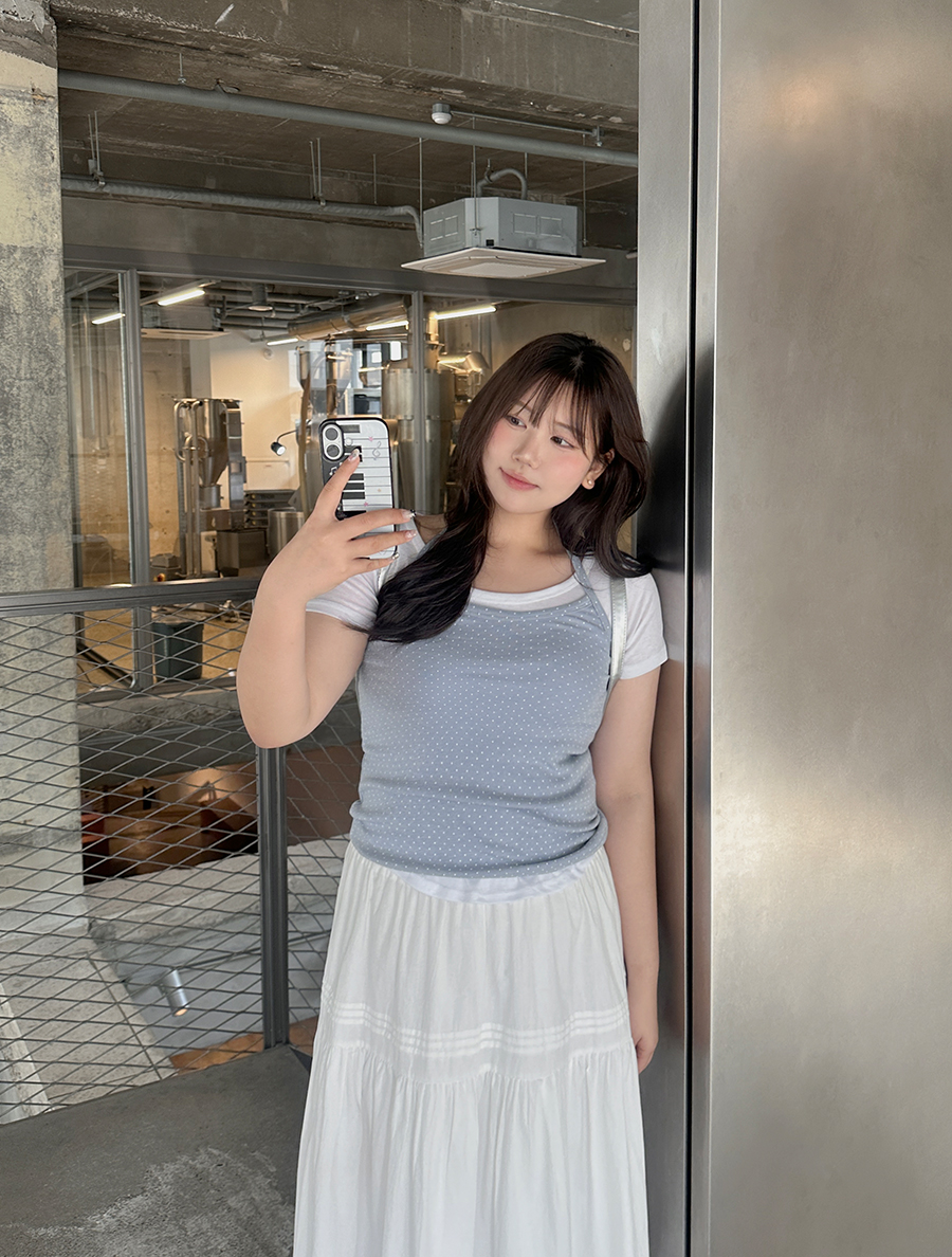 여리한 홀터넥 나시로 끈이 몸 판과 연결되어 있어