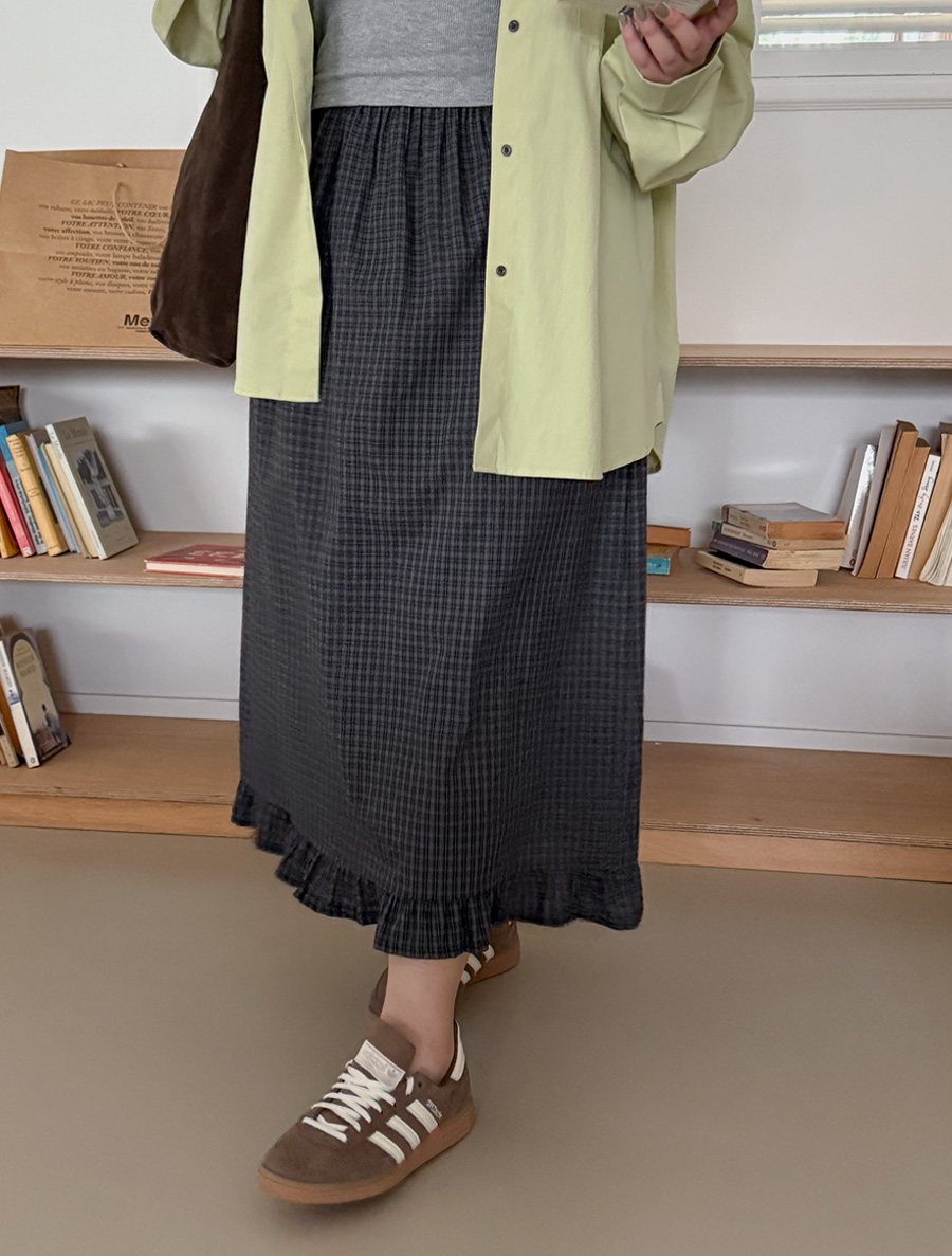 Gentoa Plaid Check Frill Long Skirt 관심상품