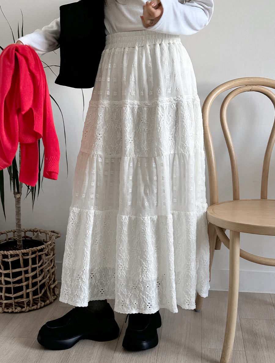 펀칭 레이스와 스트라이프 레이스 조합으로