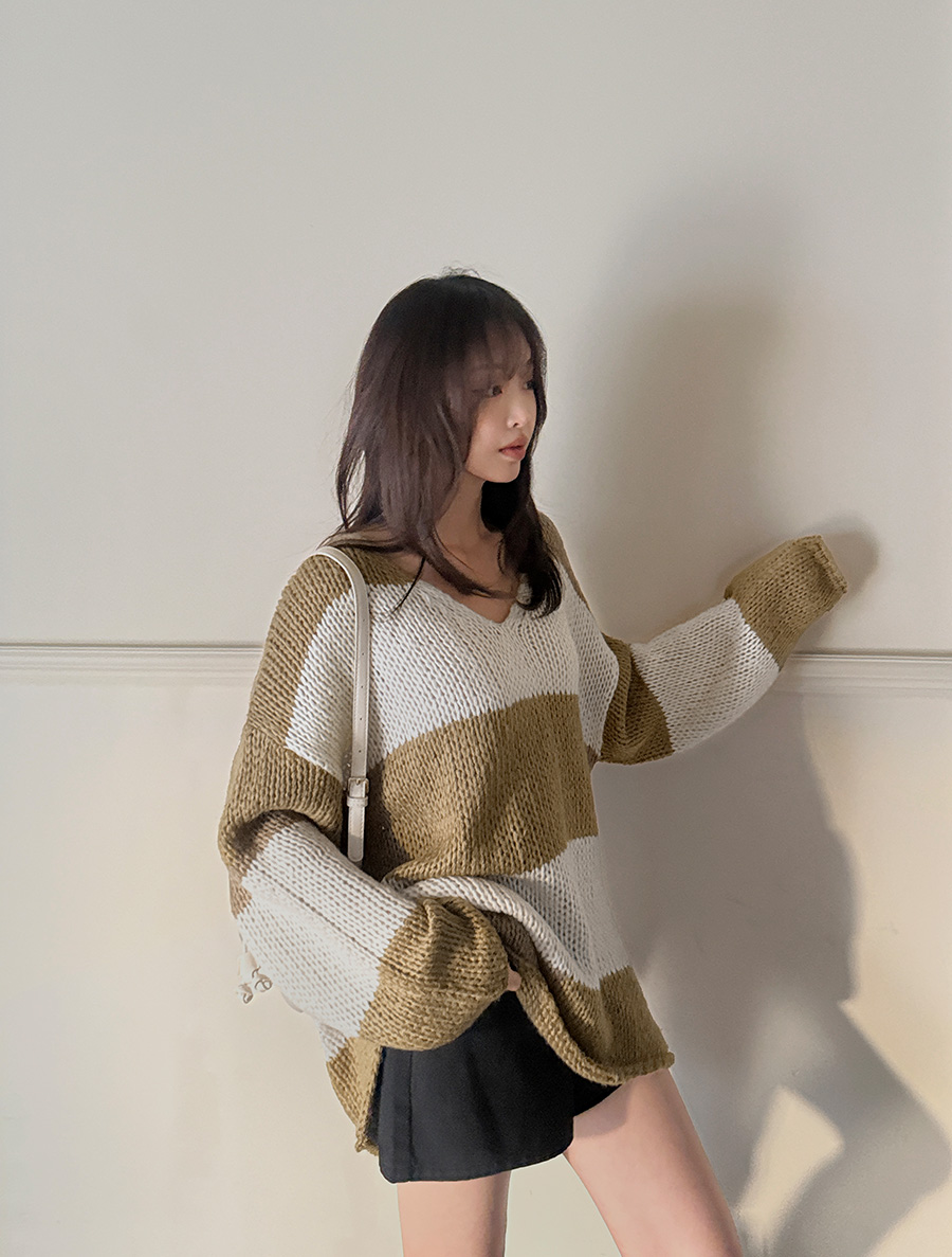 Midven Contrast ST V-Neck Knit 관심상품