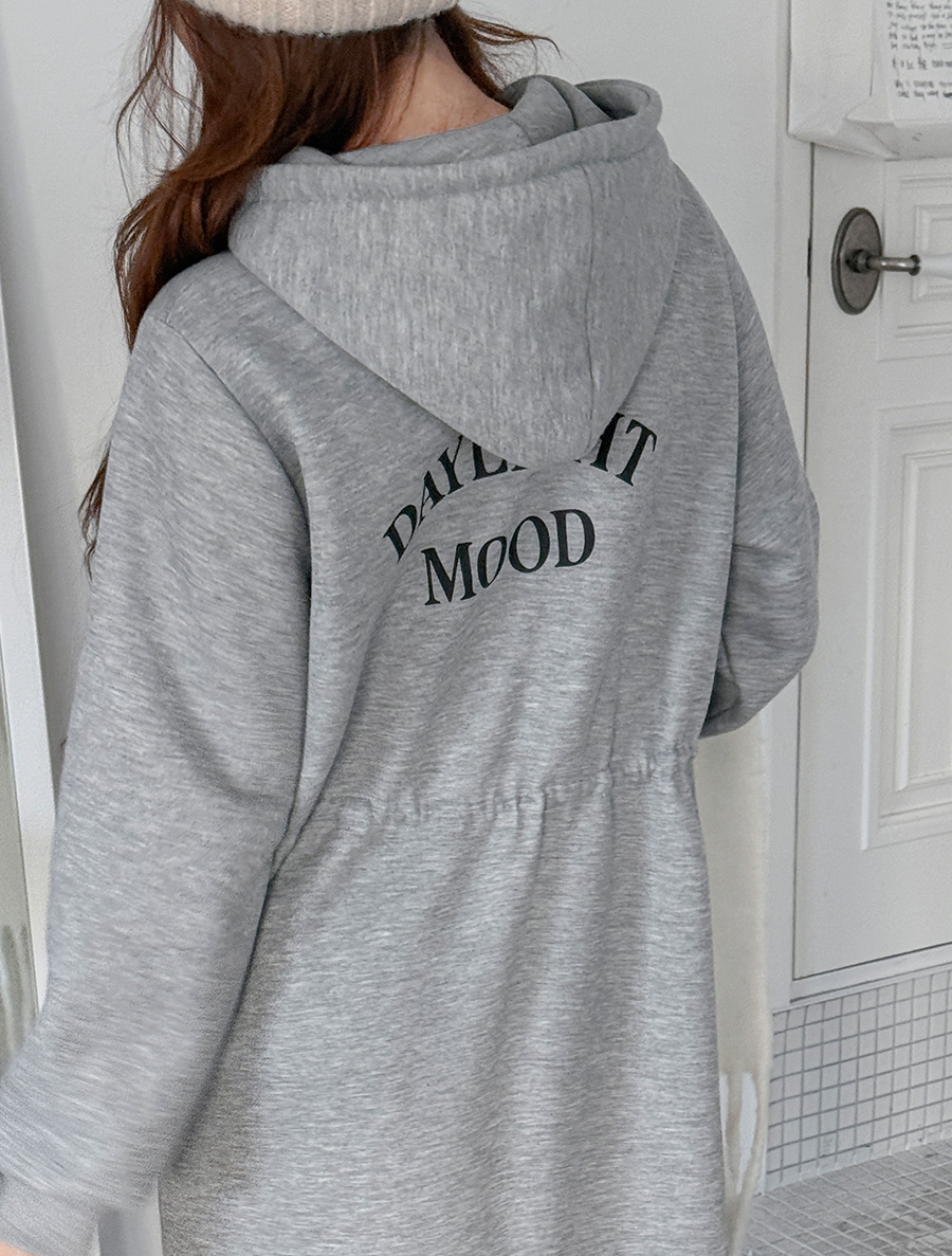 Kenuha fleece graphic print slit hood long dress 관심상품