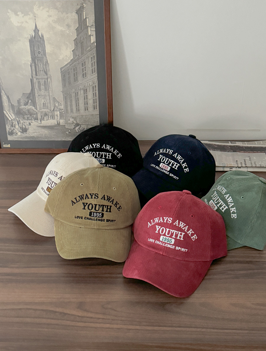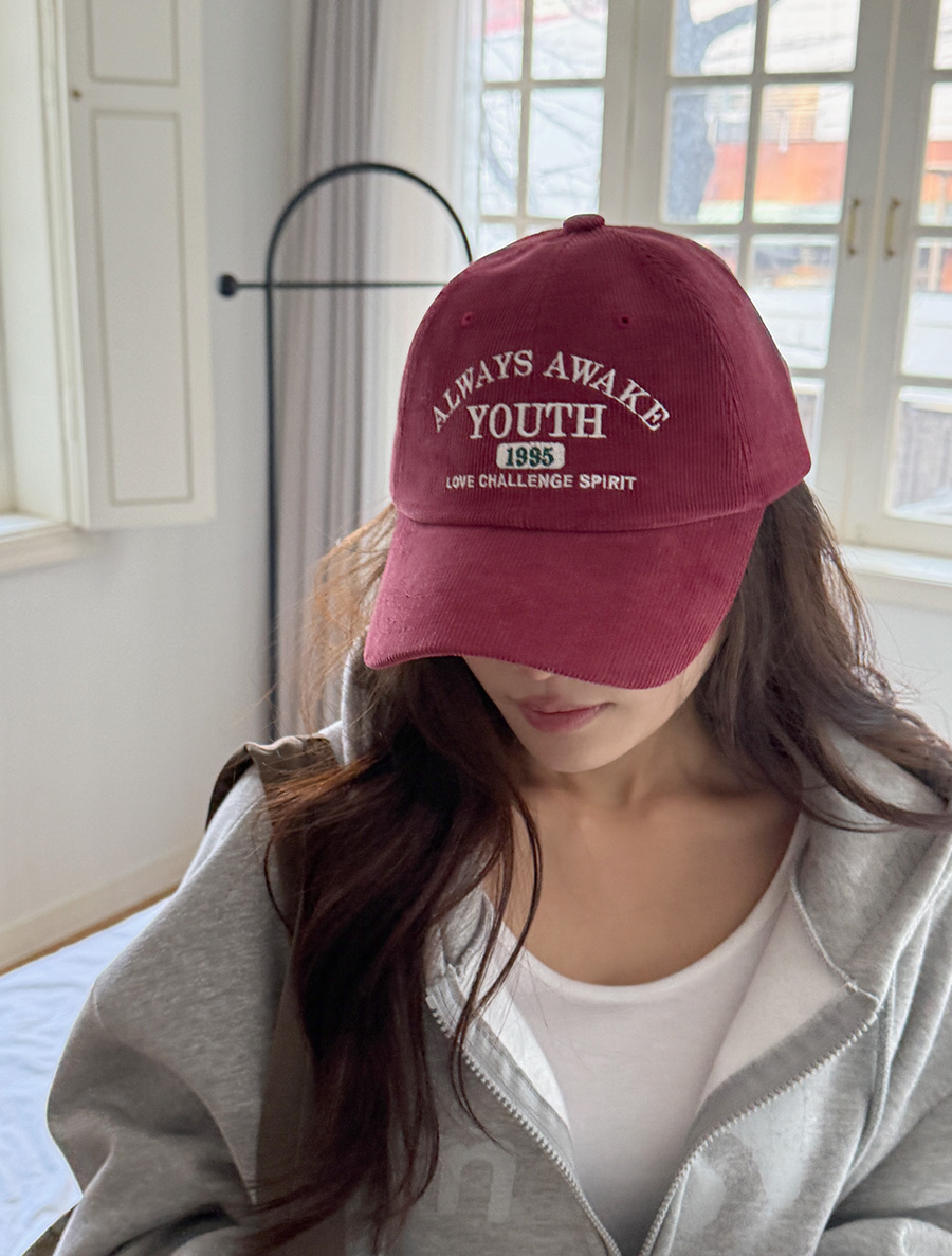 Ponmi Corduroy Embroidered Graphic Print Ball Cap 관심상품