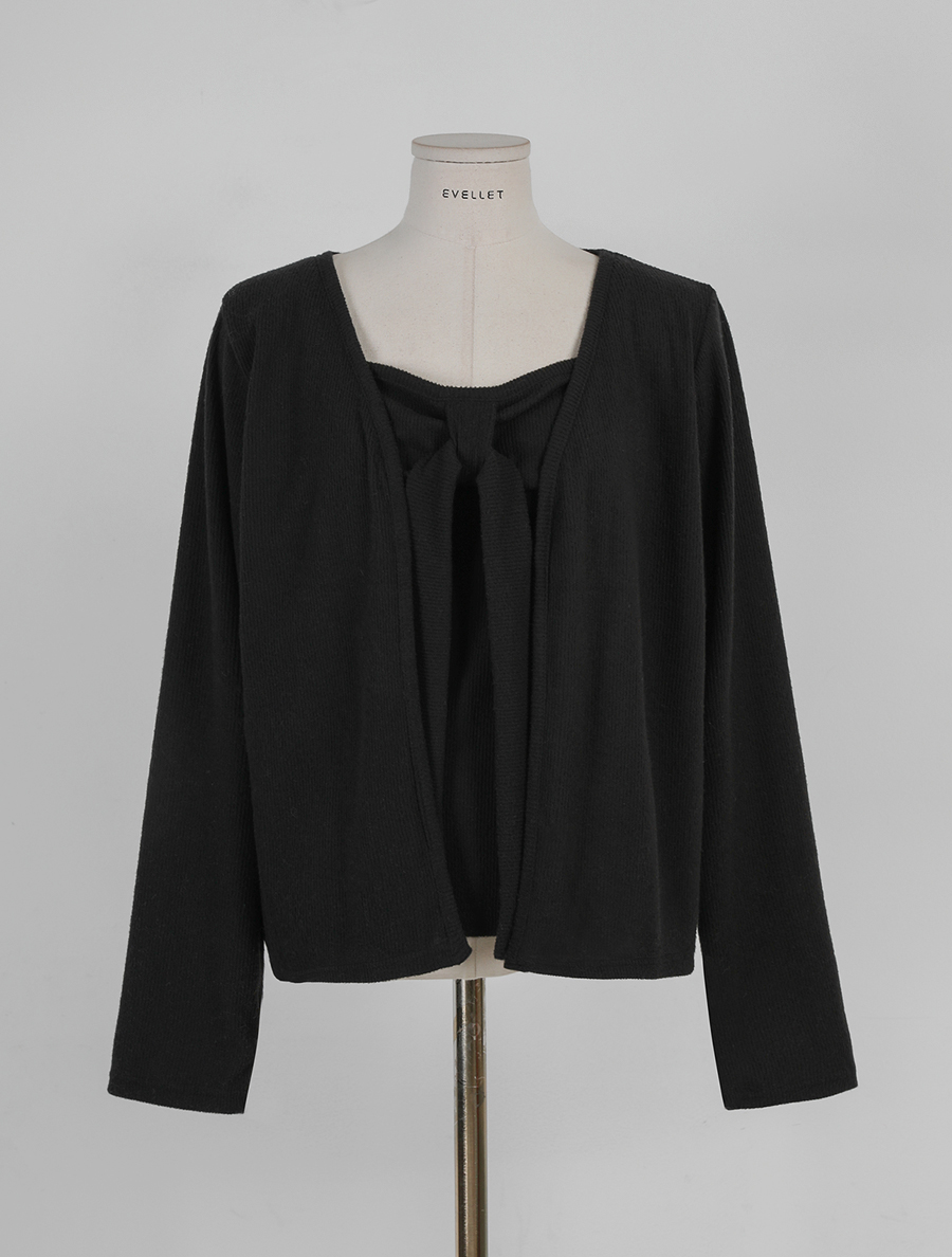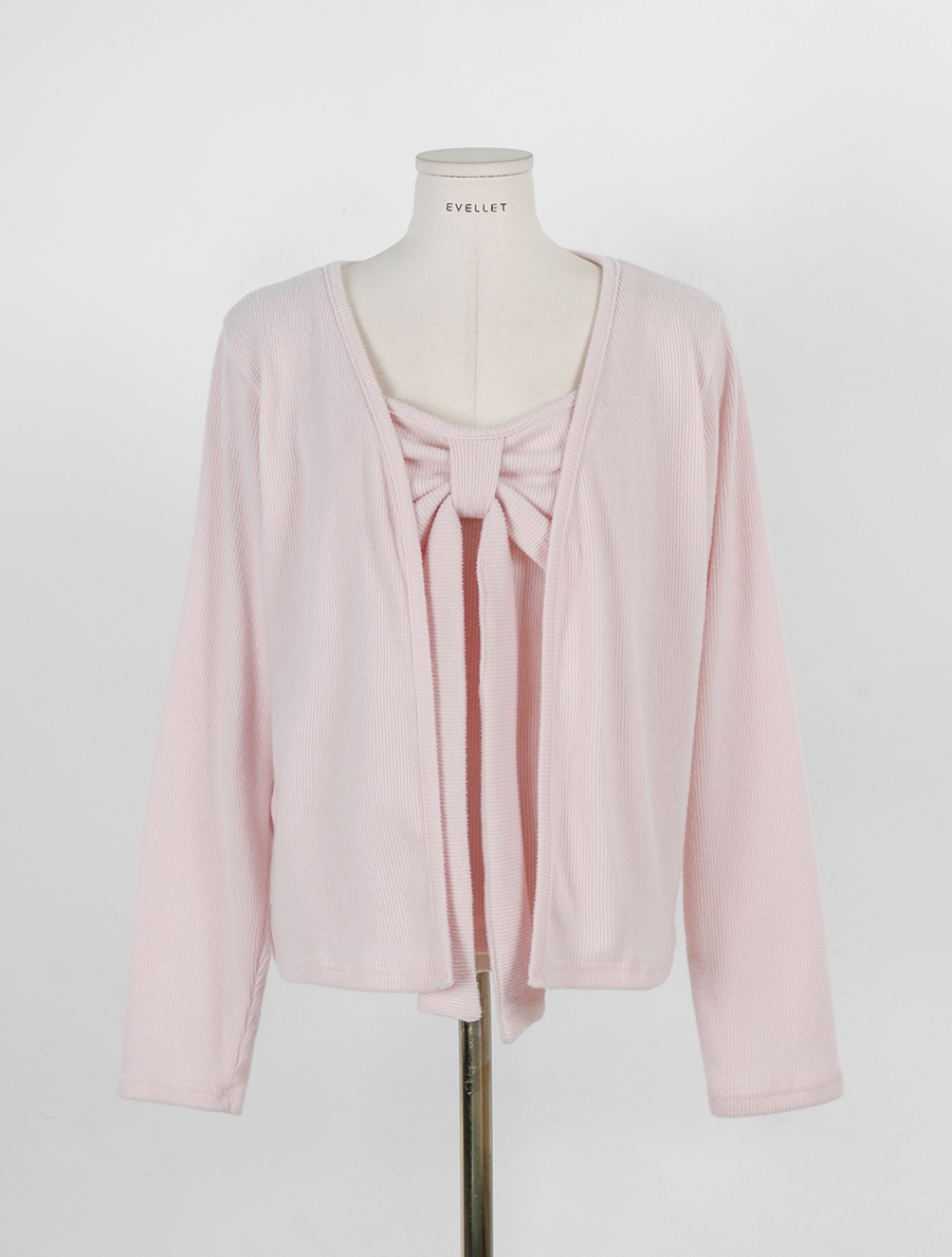 Newtoa fleece bowknot sleeveless cardigan set 관심상품