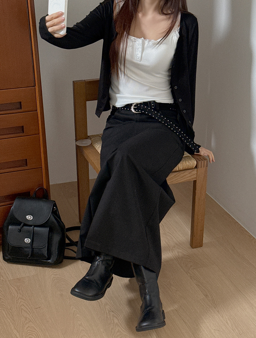 움직임을 고려해 뒷판에 트임을 더해줬어요.