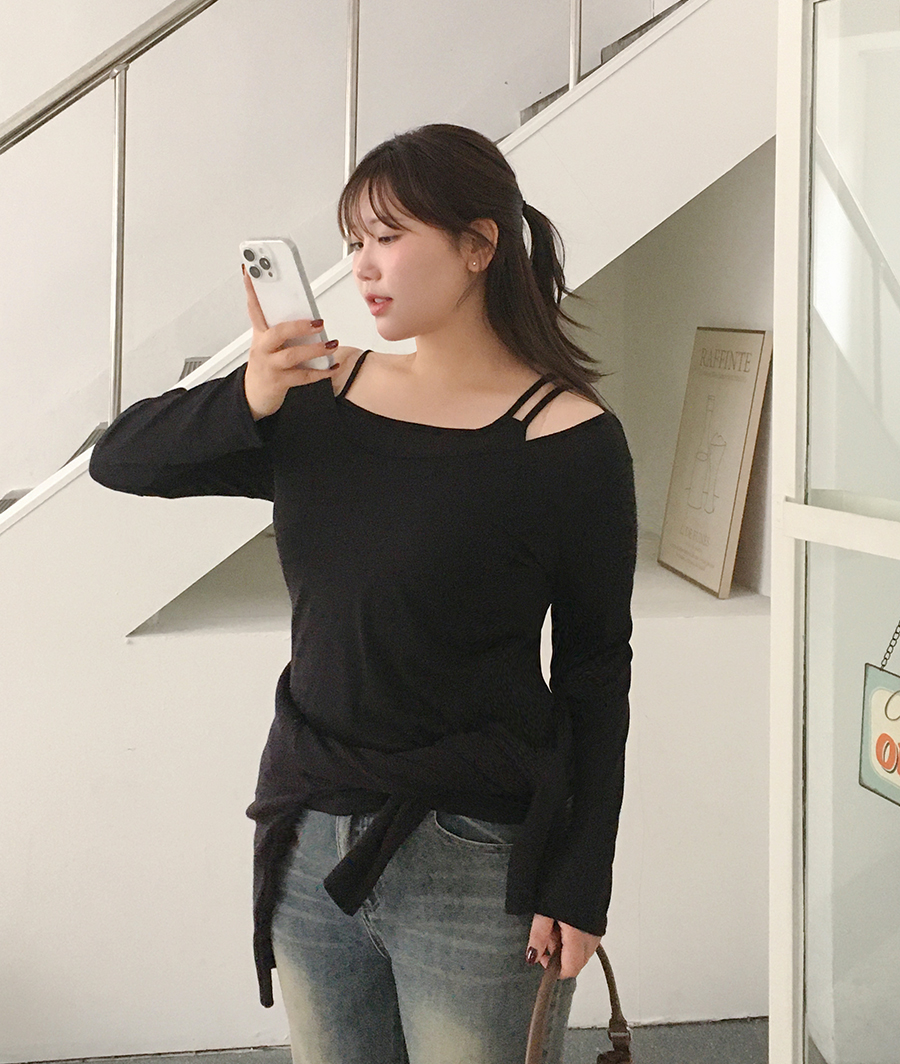 감각적인 비대칭 나시 어깨끈