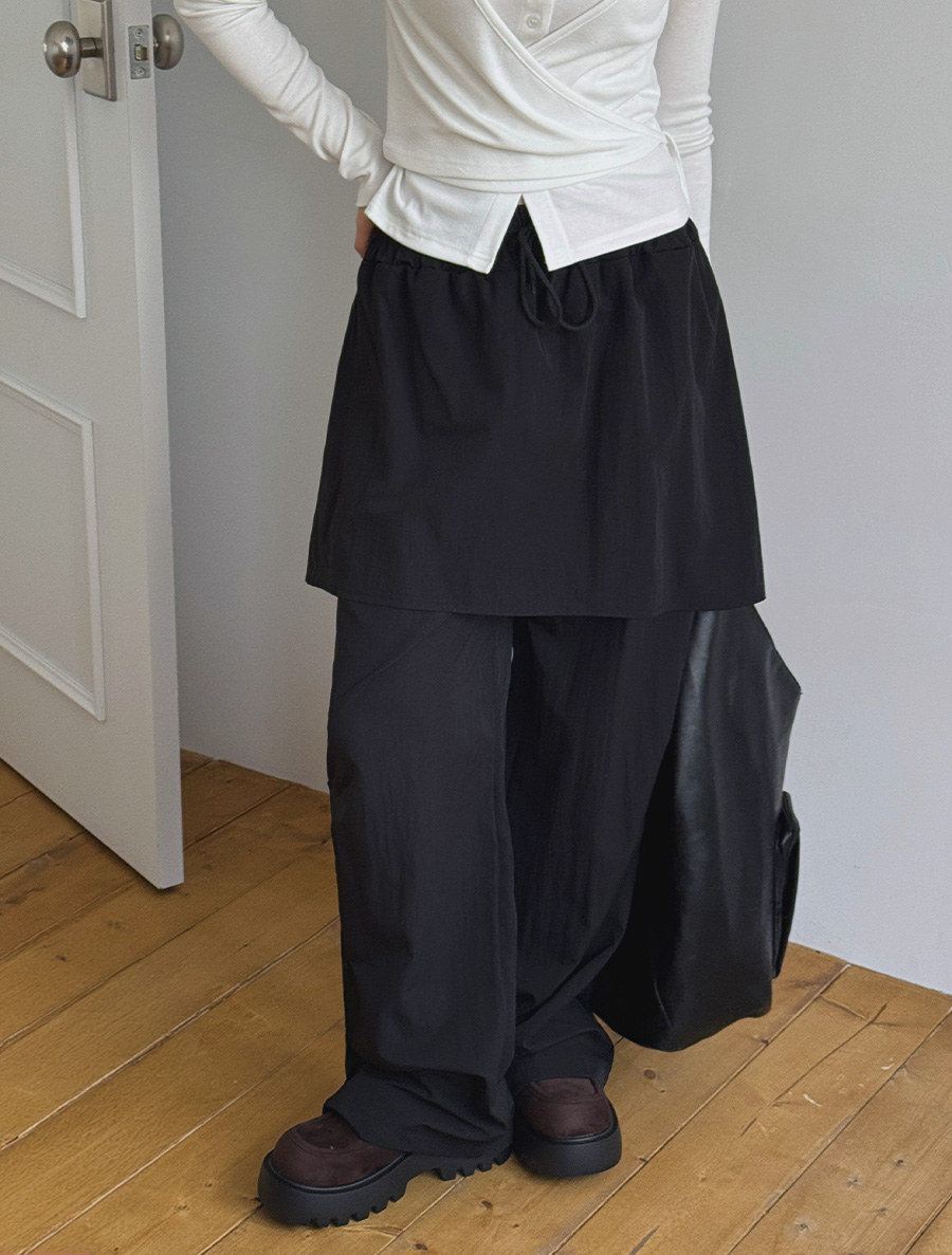 Leafhe Nylon Layered Skirt Pants | EVELLET