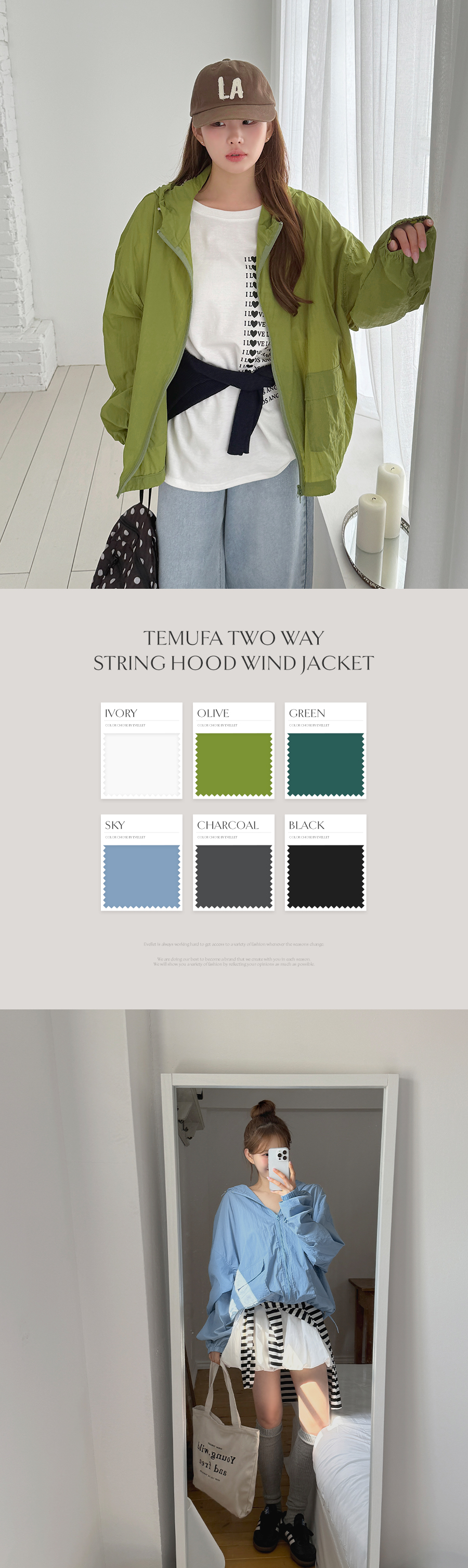 아이보리(IVORY)/올리브(OLIVE)/그린(GREEN)/스카이(SKY)/차콜(CHARCOAL)/블랙(BLACK)