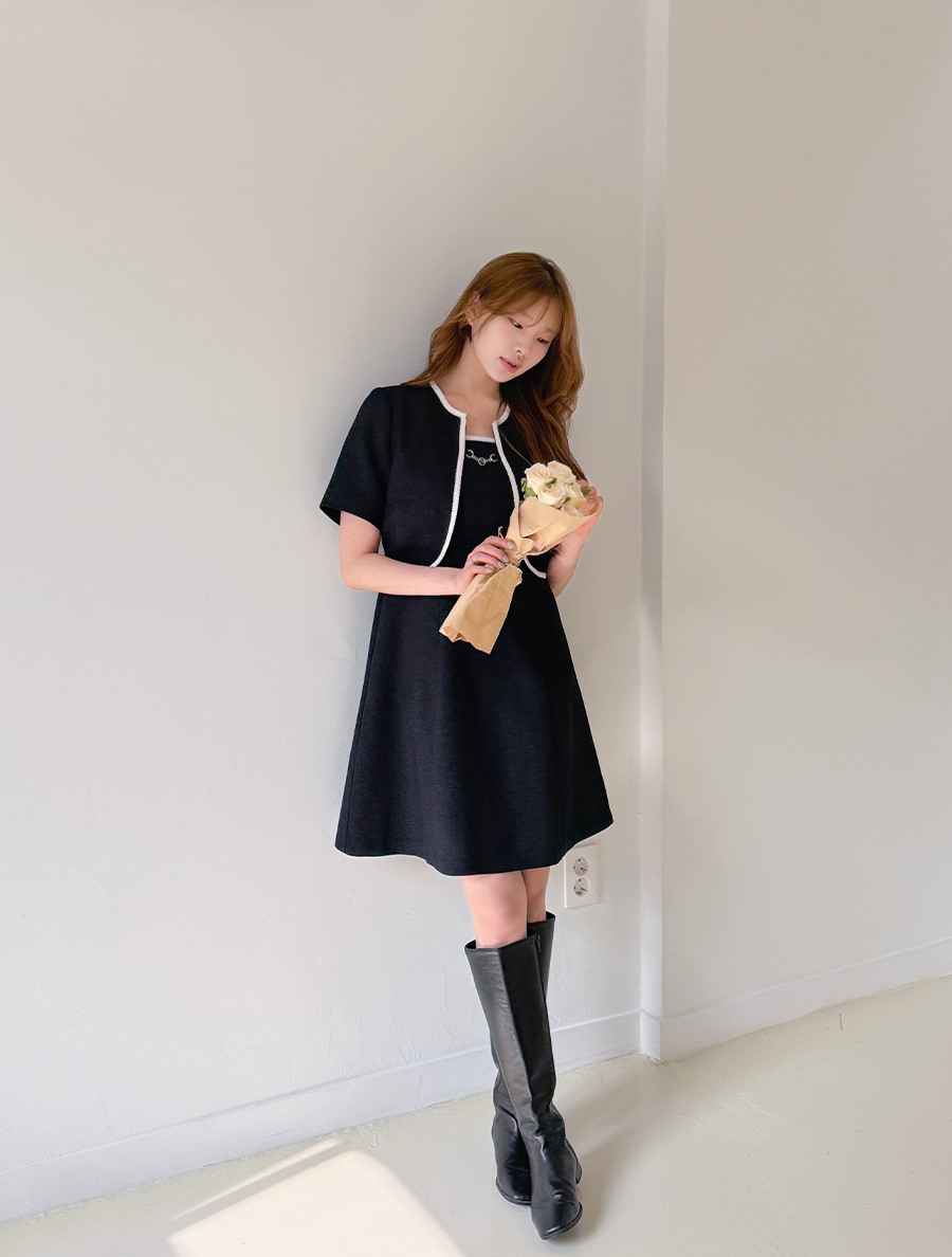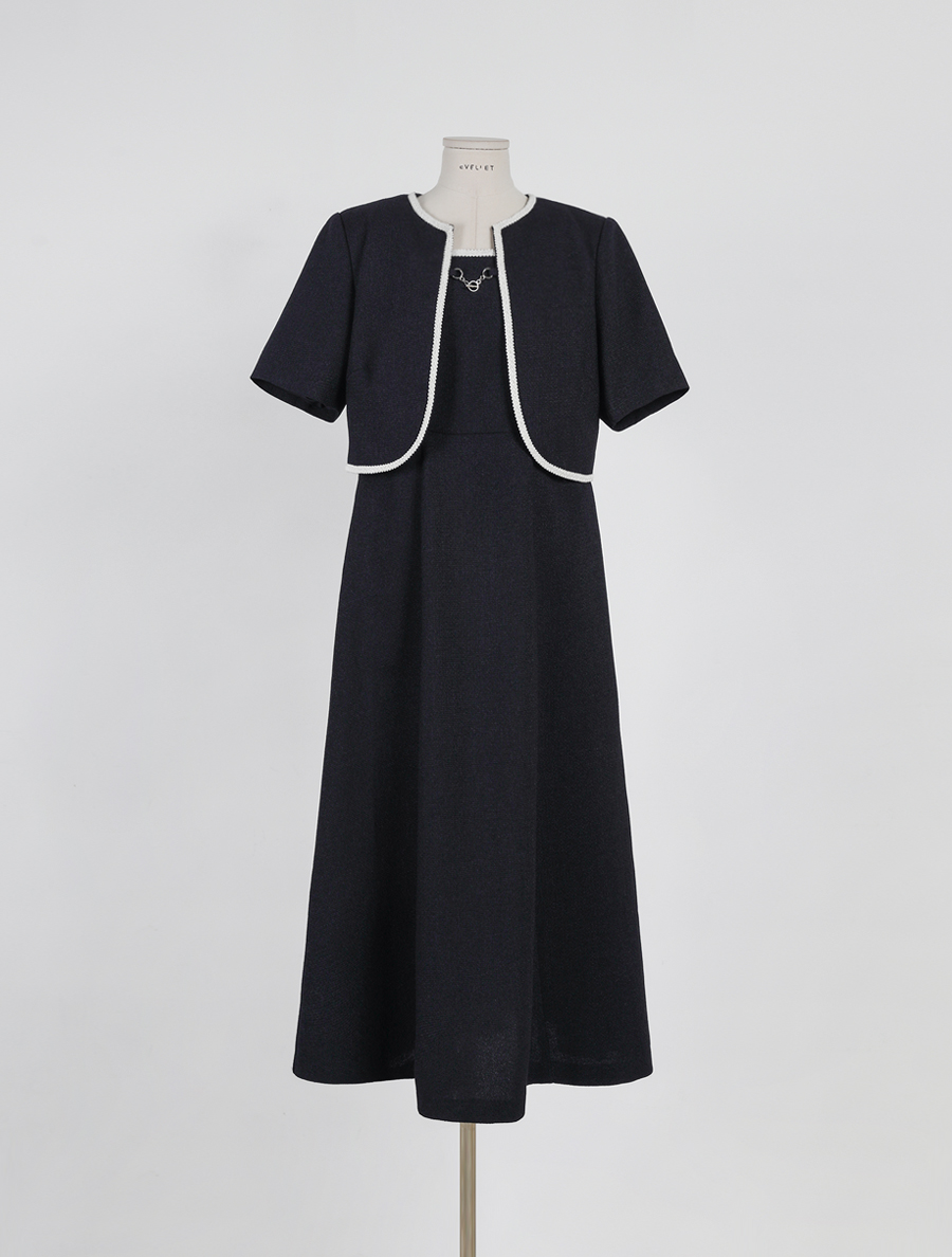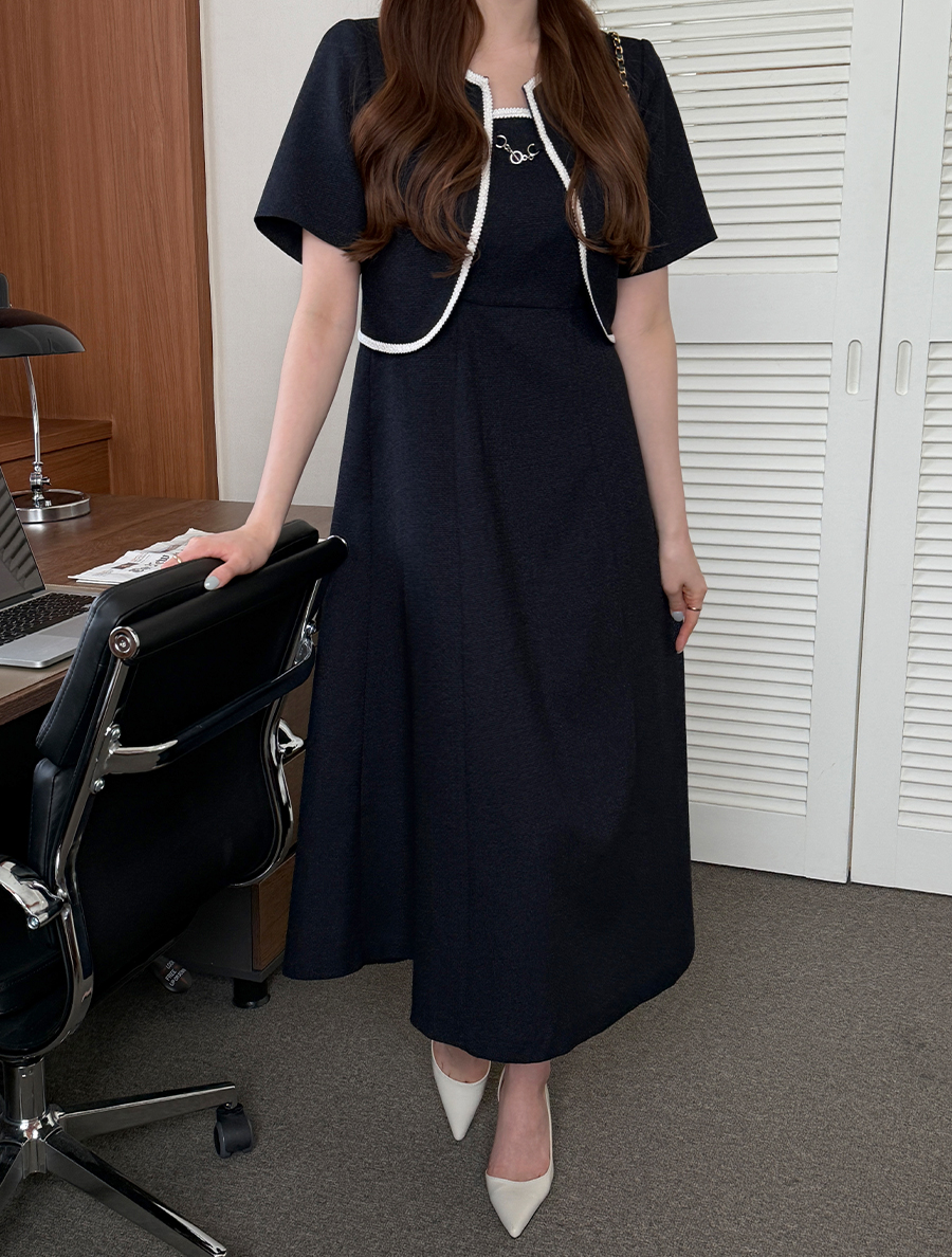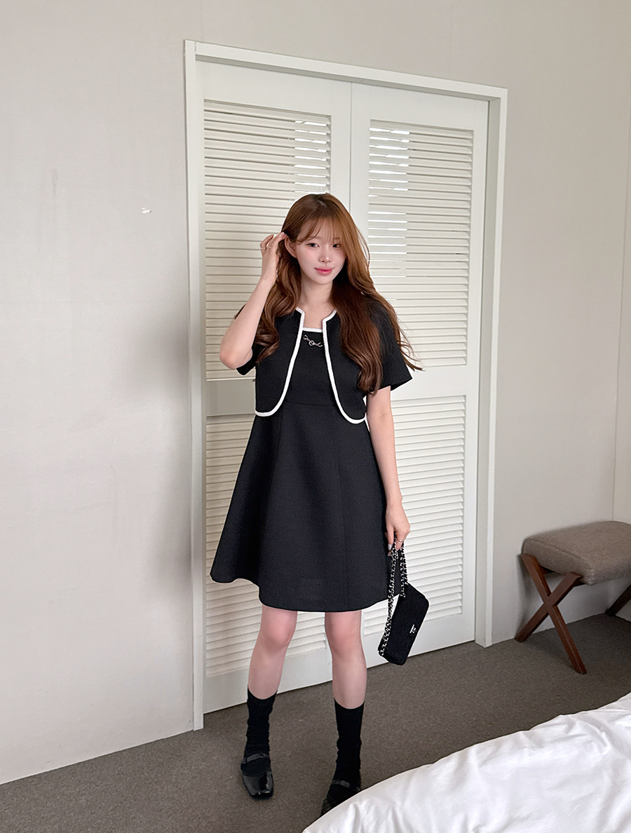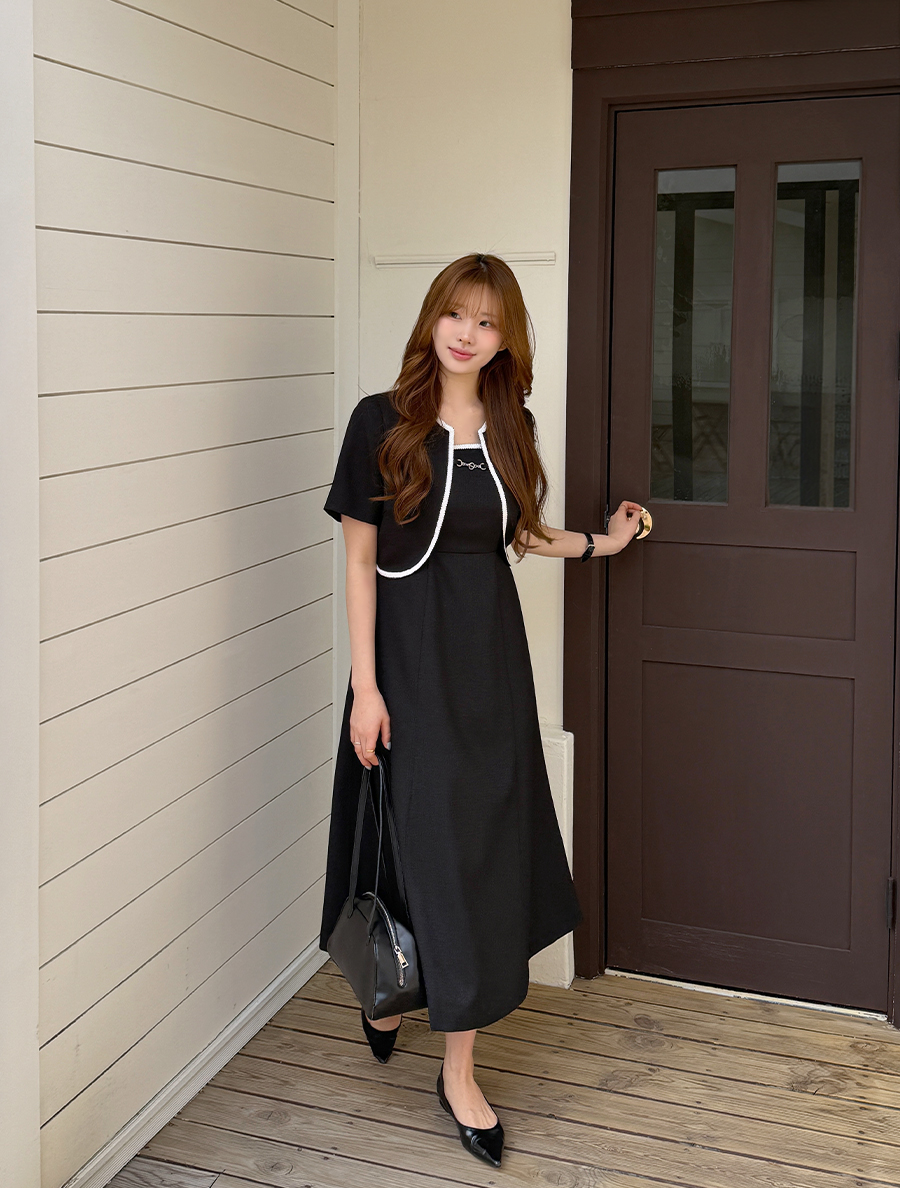 원피스에 자켓을 걸친 듯한 디자인인데요.