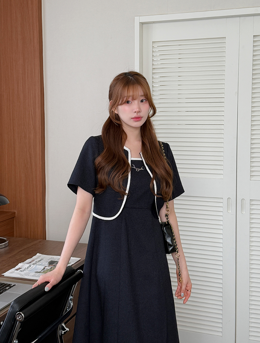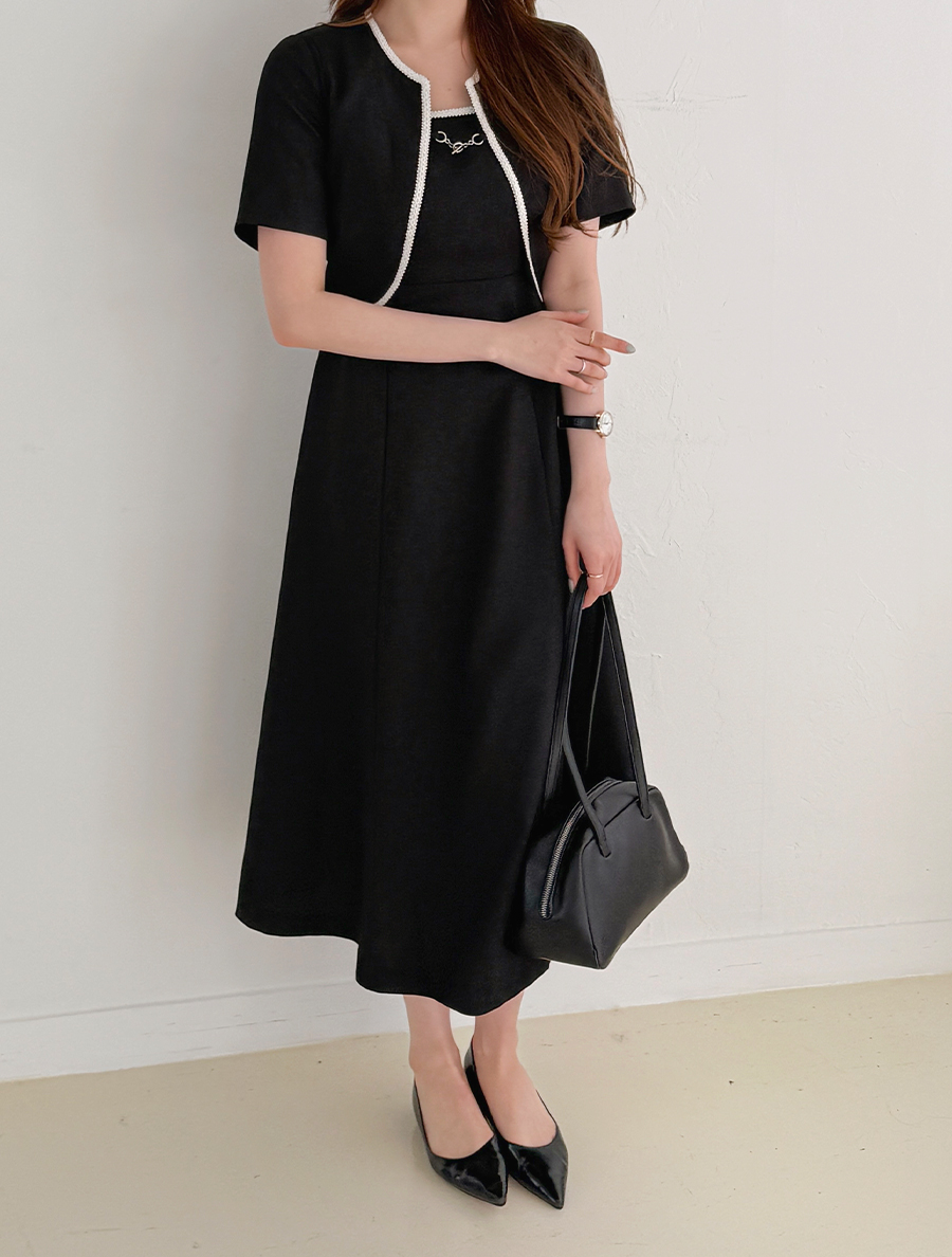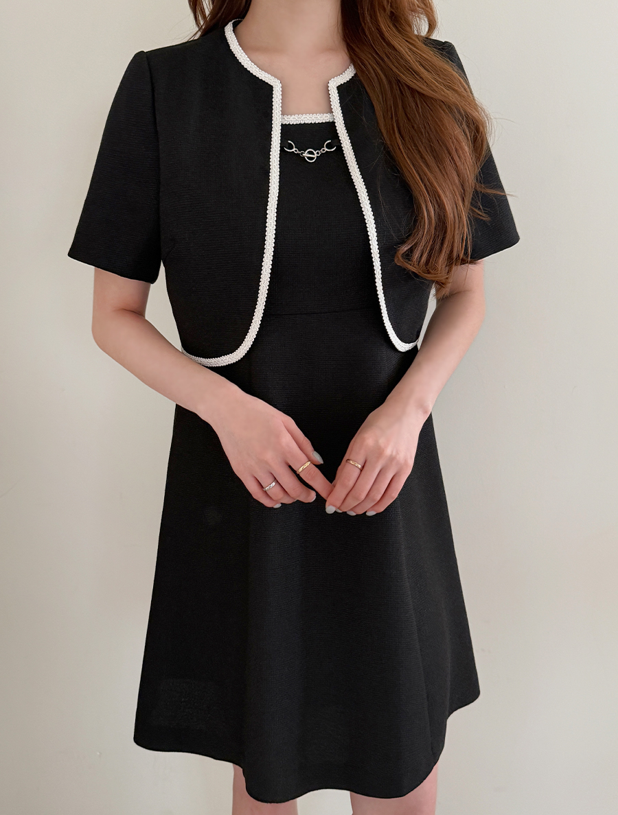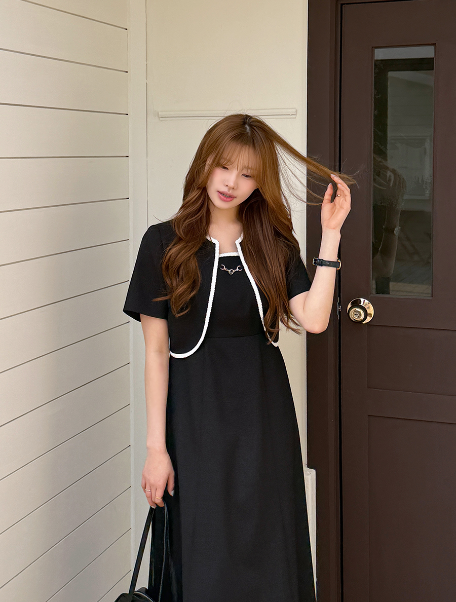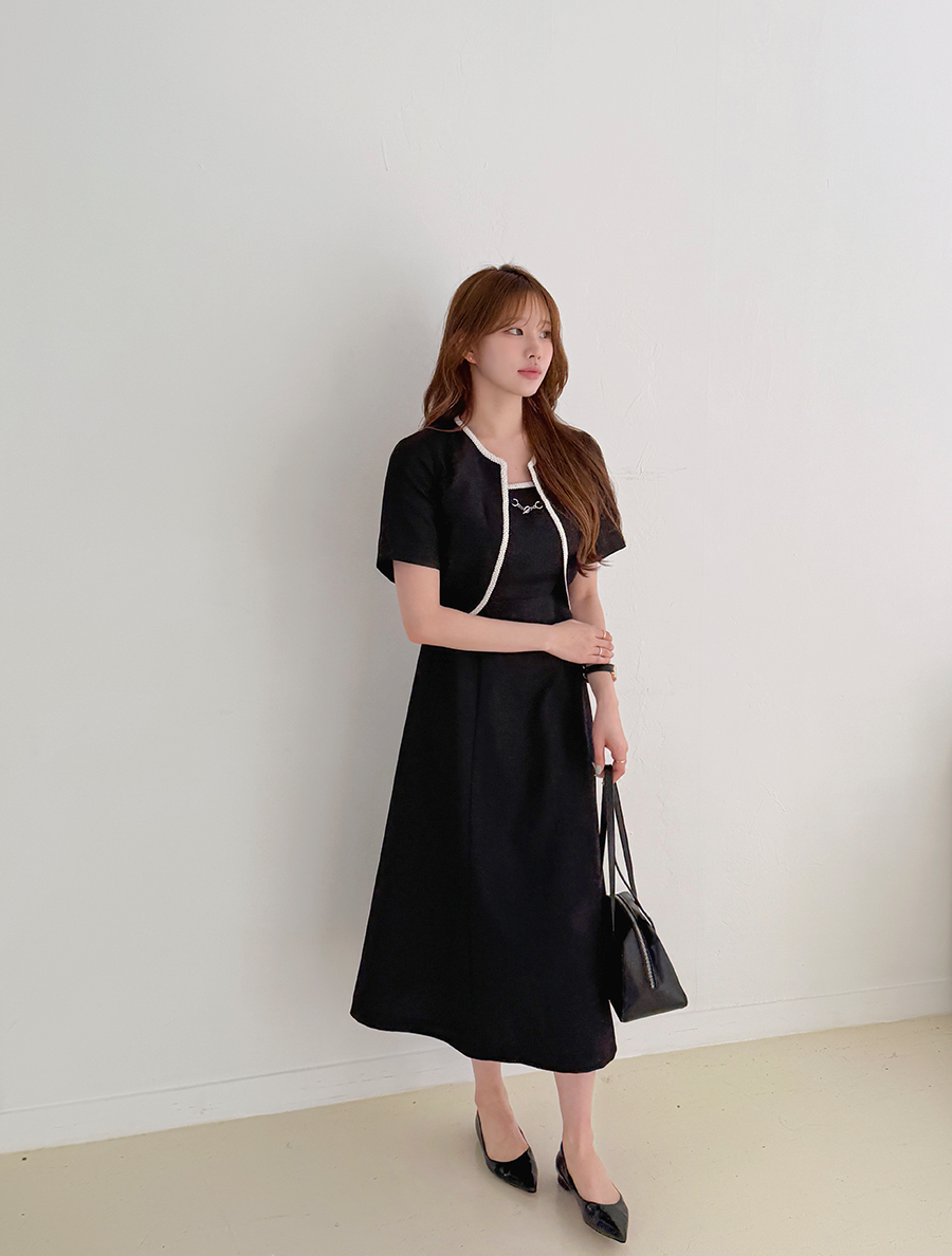 원피스에 자켓을 걸친 듯한 디자인인데요.