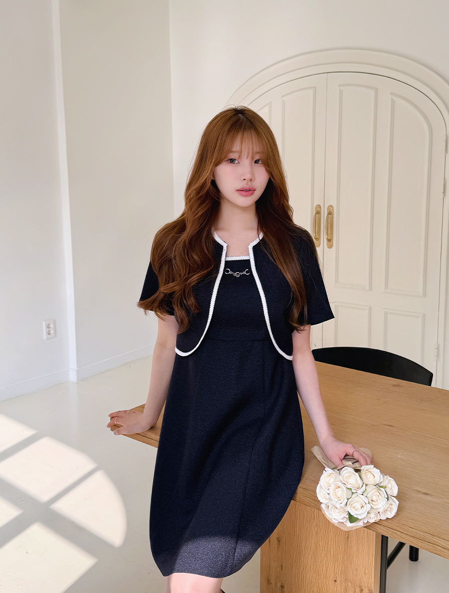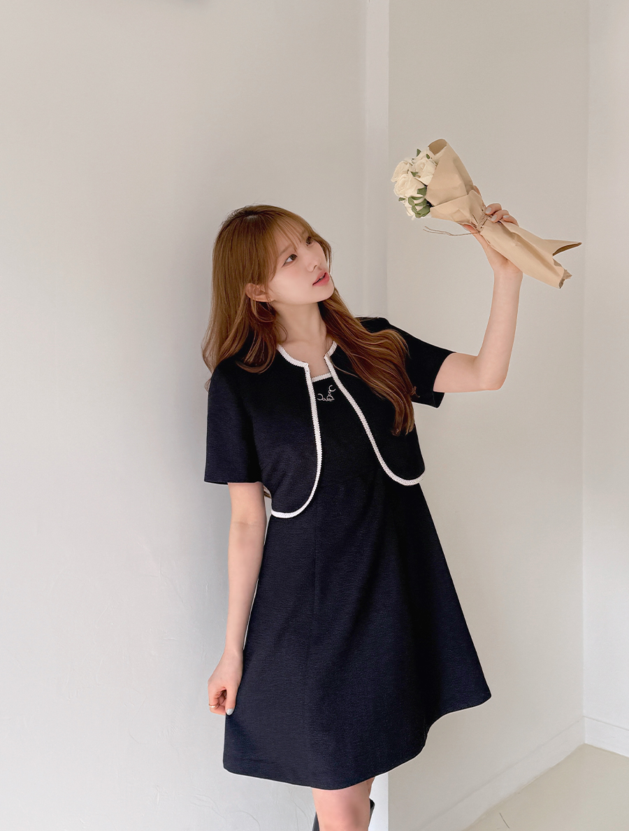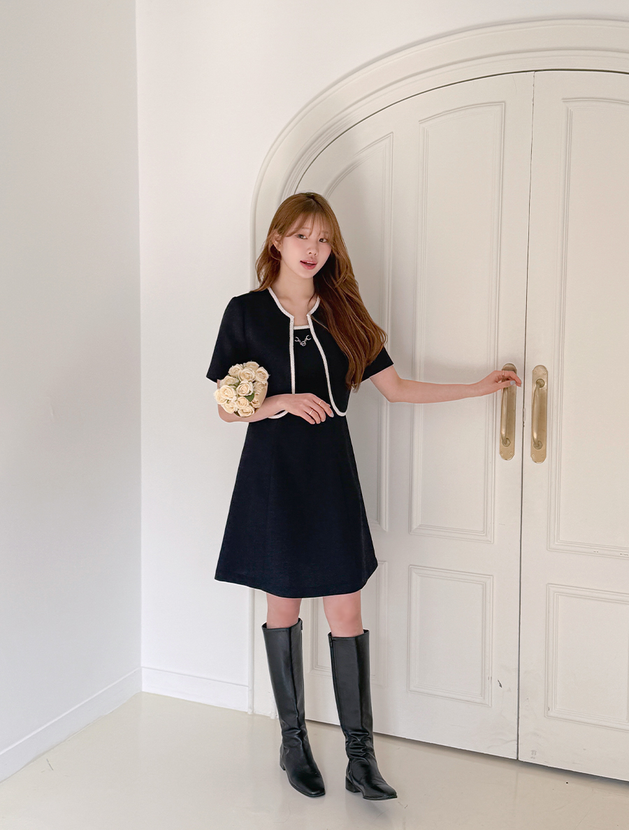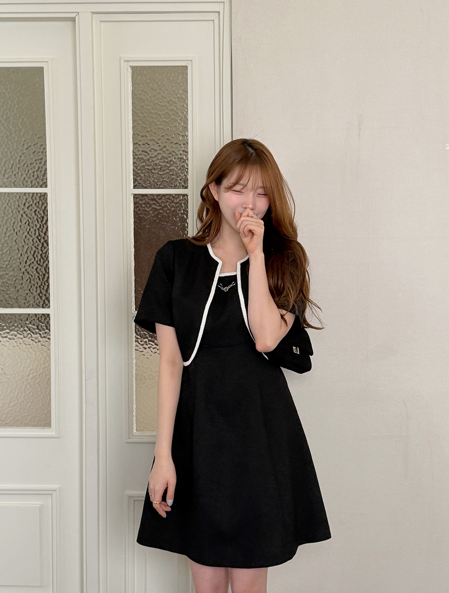 원피스에 자켓을 걸친 듯한 디자인인데요.