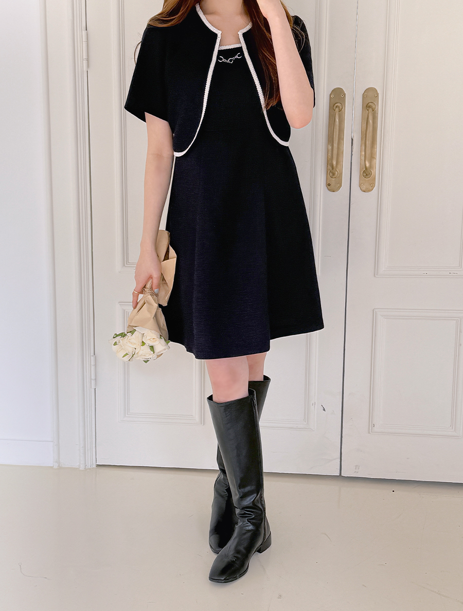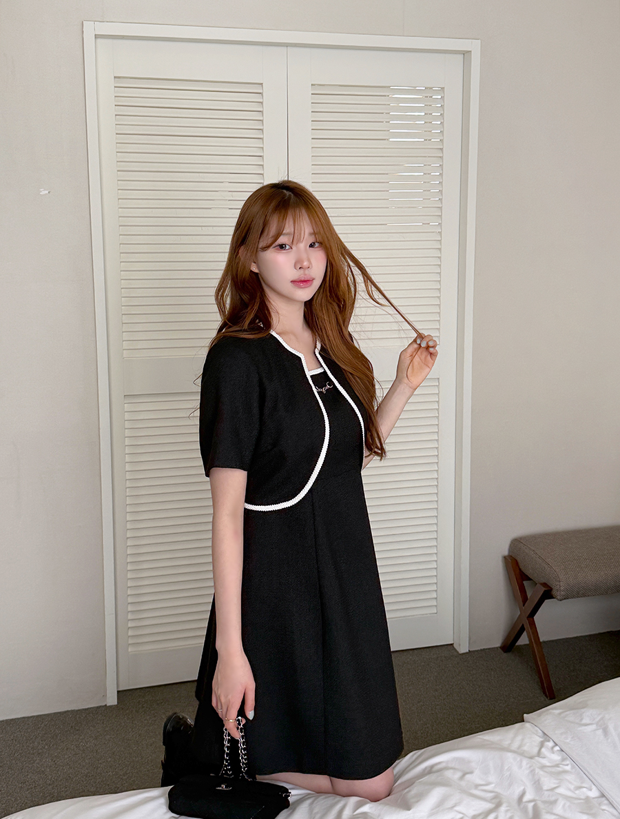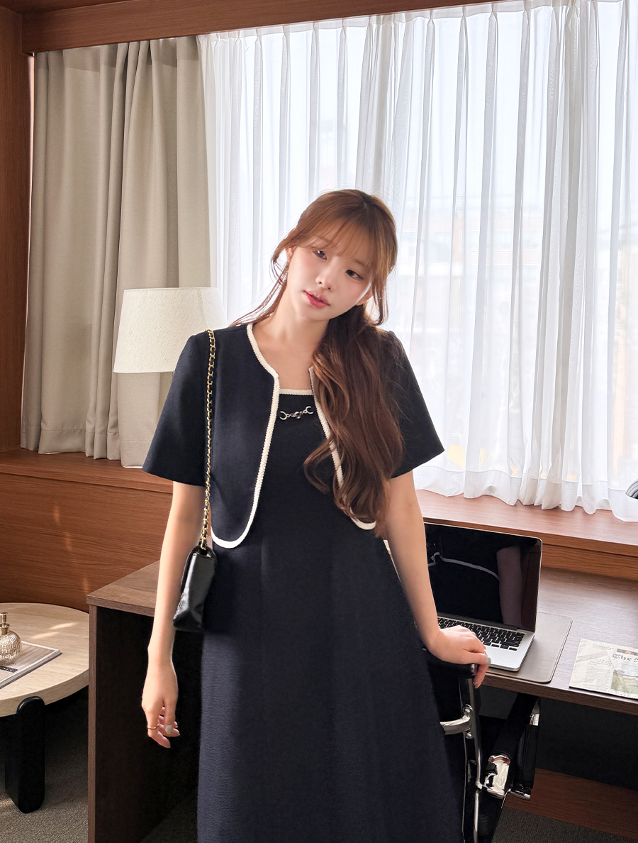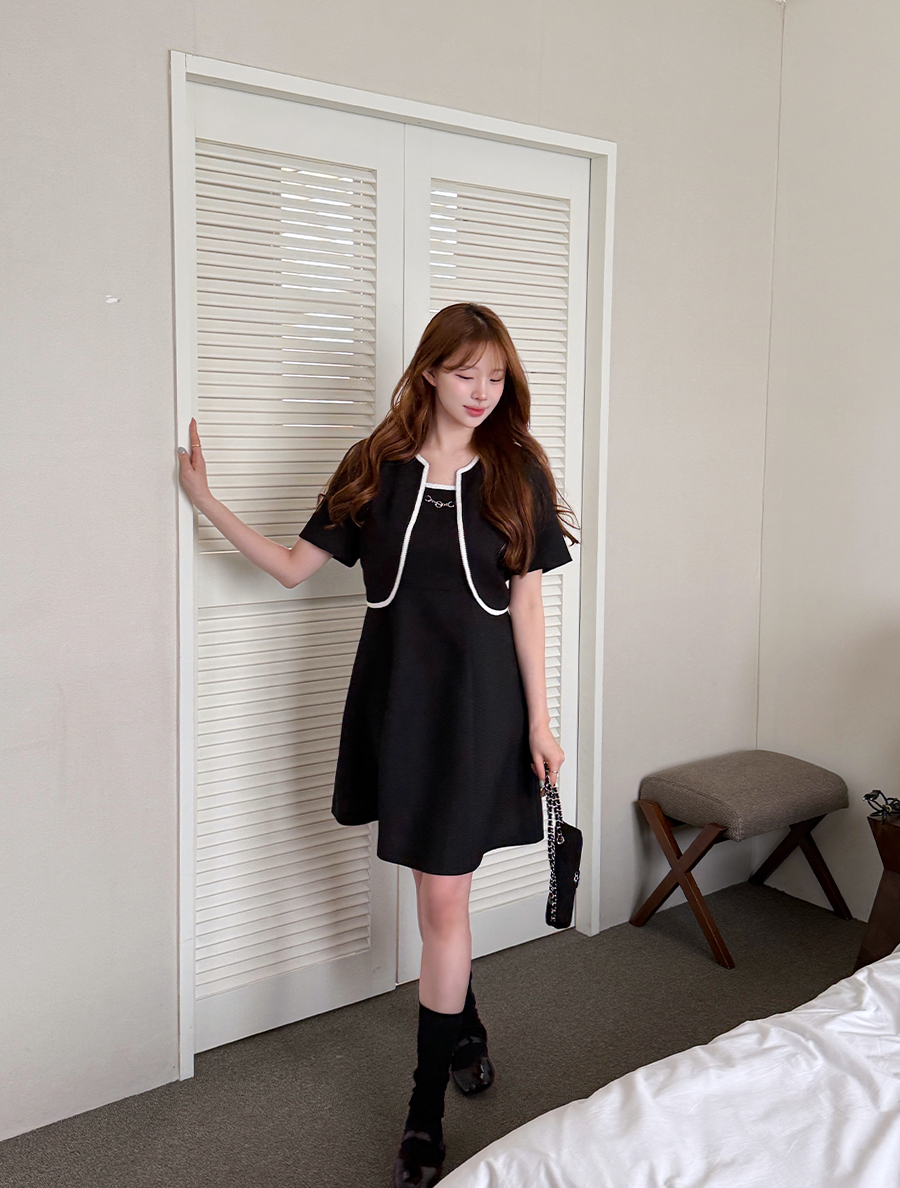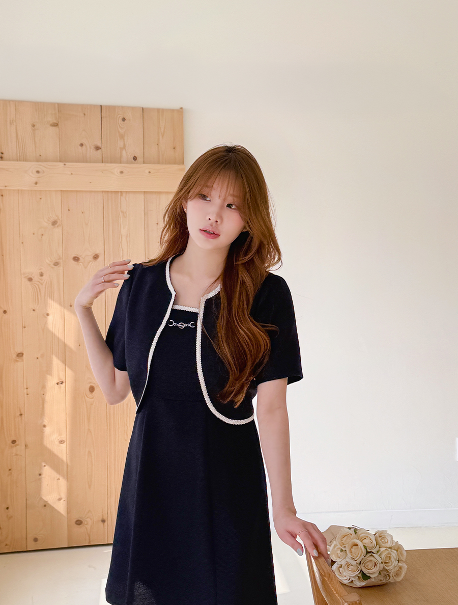 원피스에 자켓을 걸친 듯한 디자인인데요.
