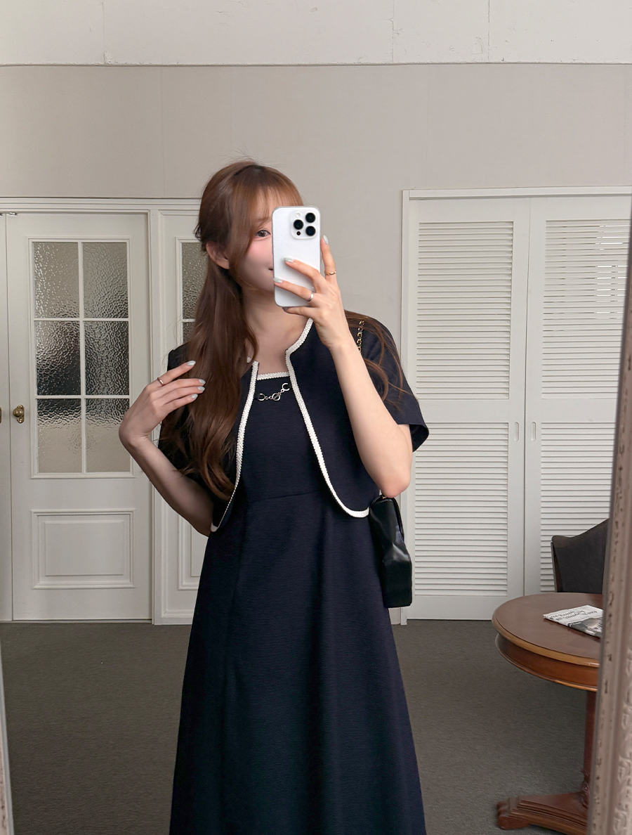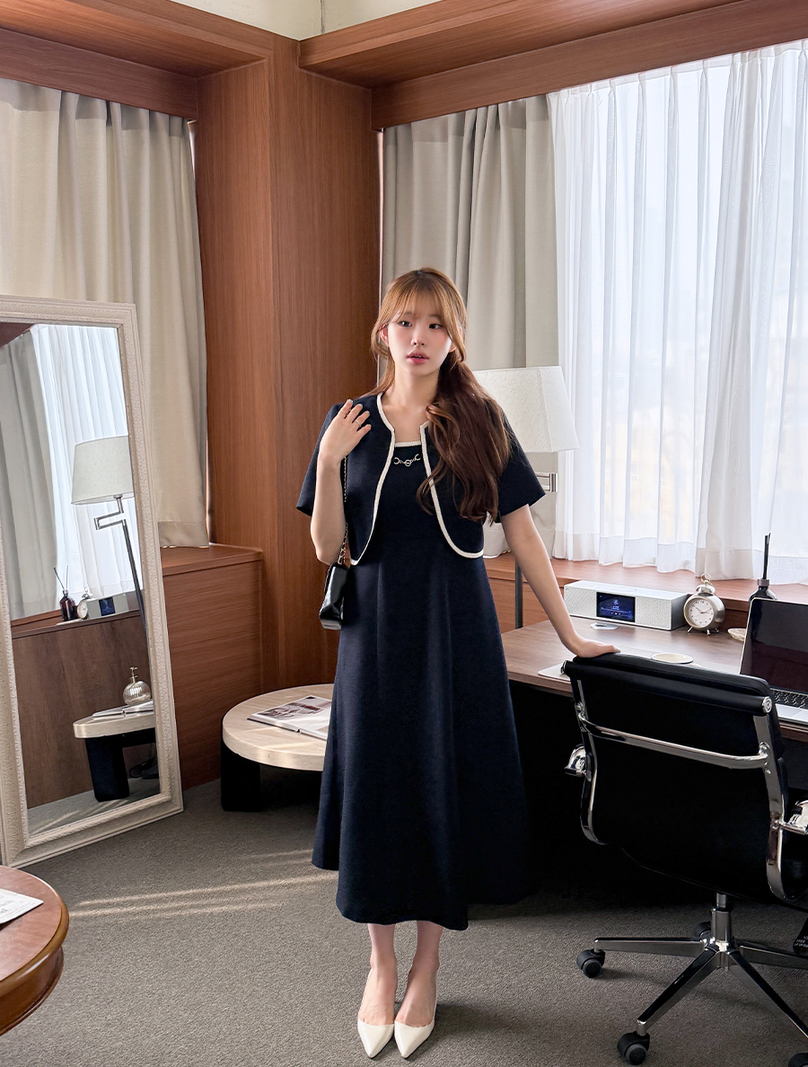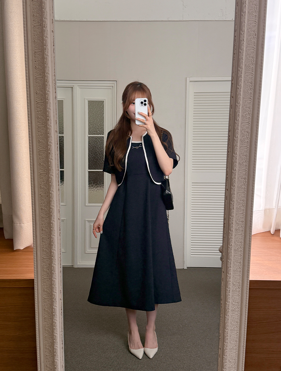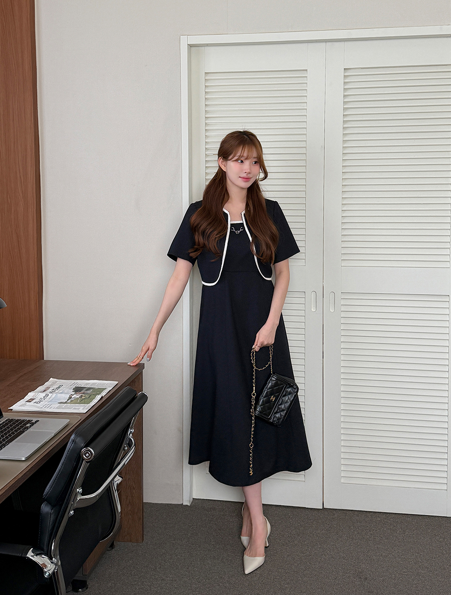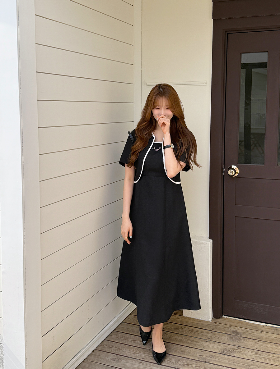 원피스에 자켓을 걸친 듯한 디자인인데요.