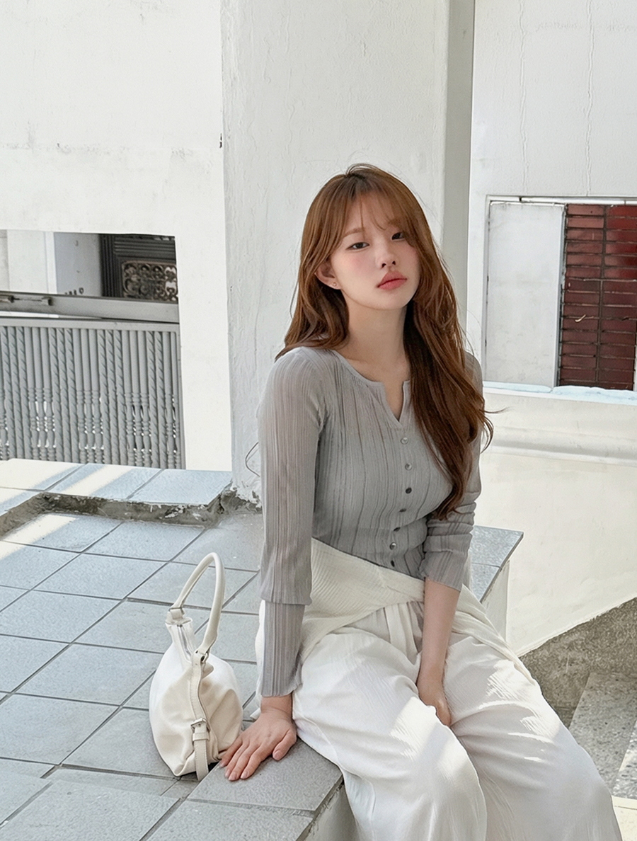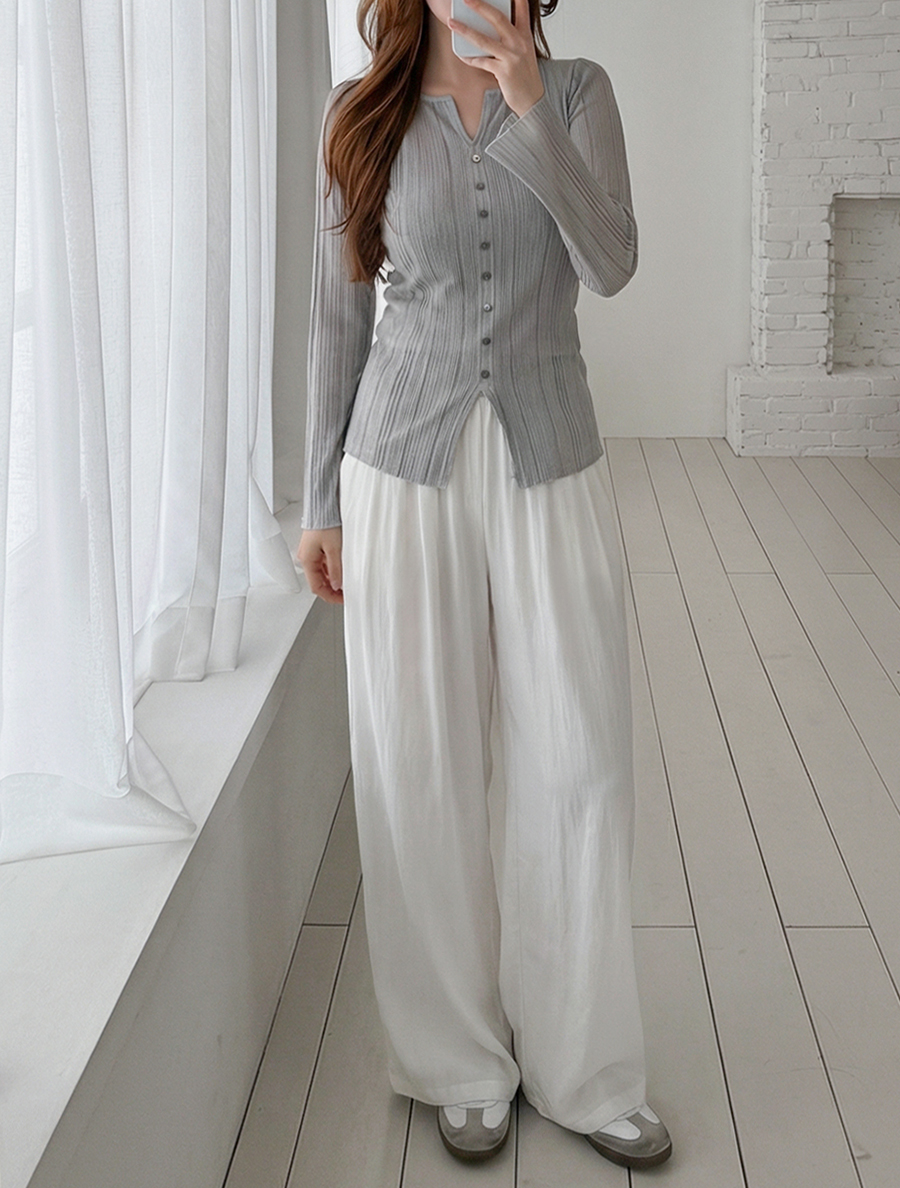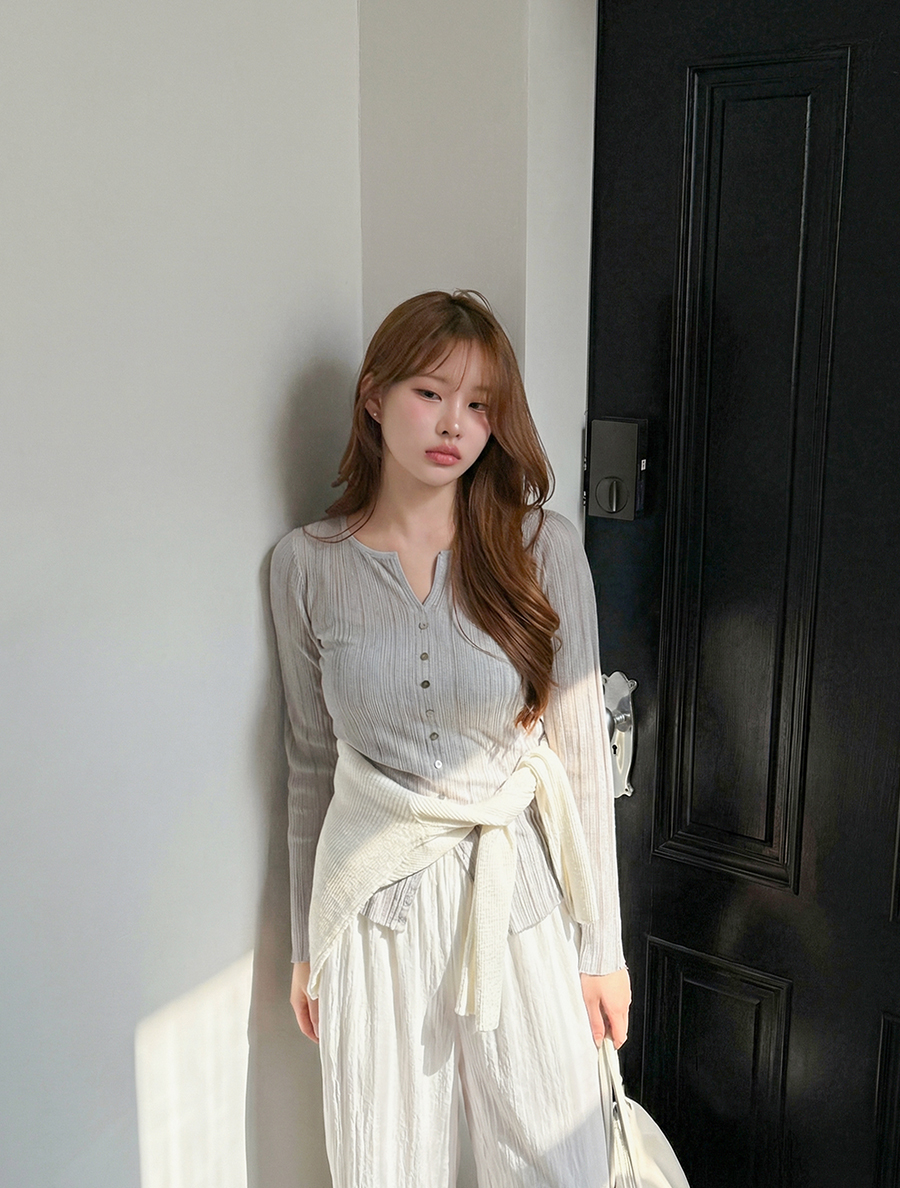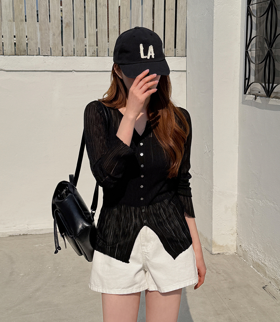 얇은 소재에 여러 개의 단추 디테일이