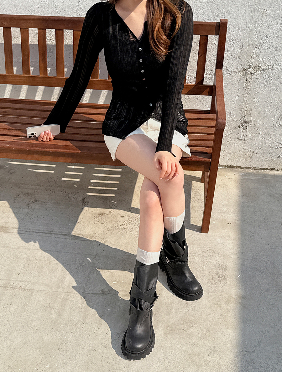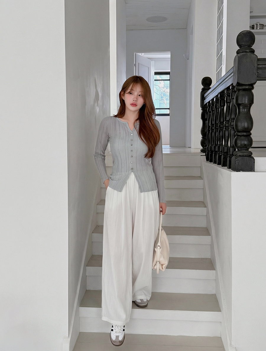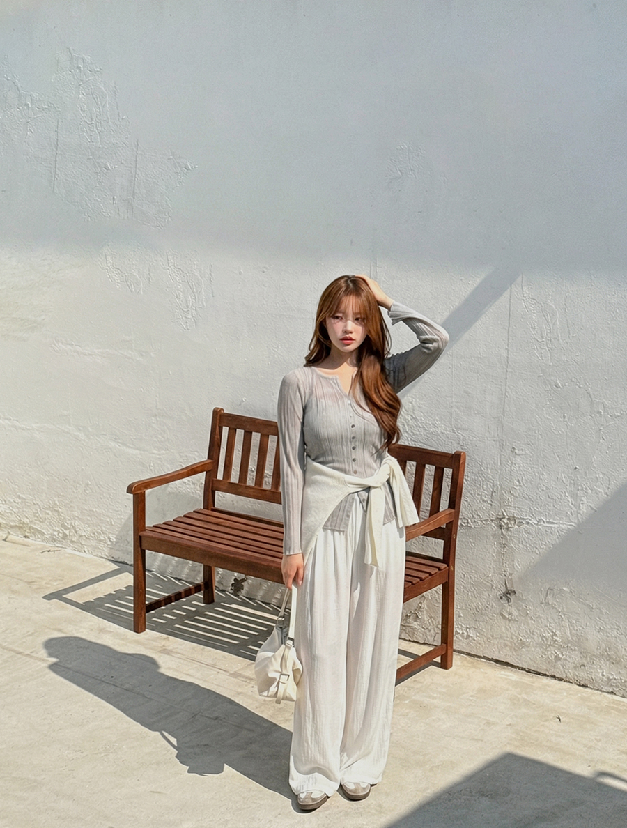 얇은 소재에 여러 개의 단추 디테일이