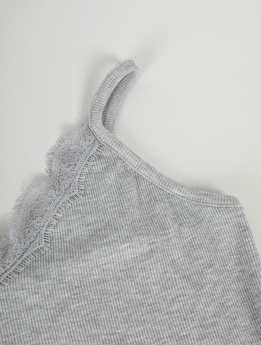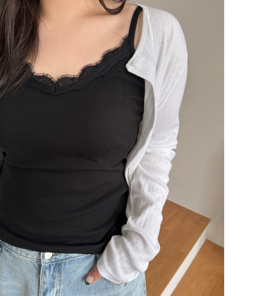 네크라인에 더해진 레이스 디테일로