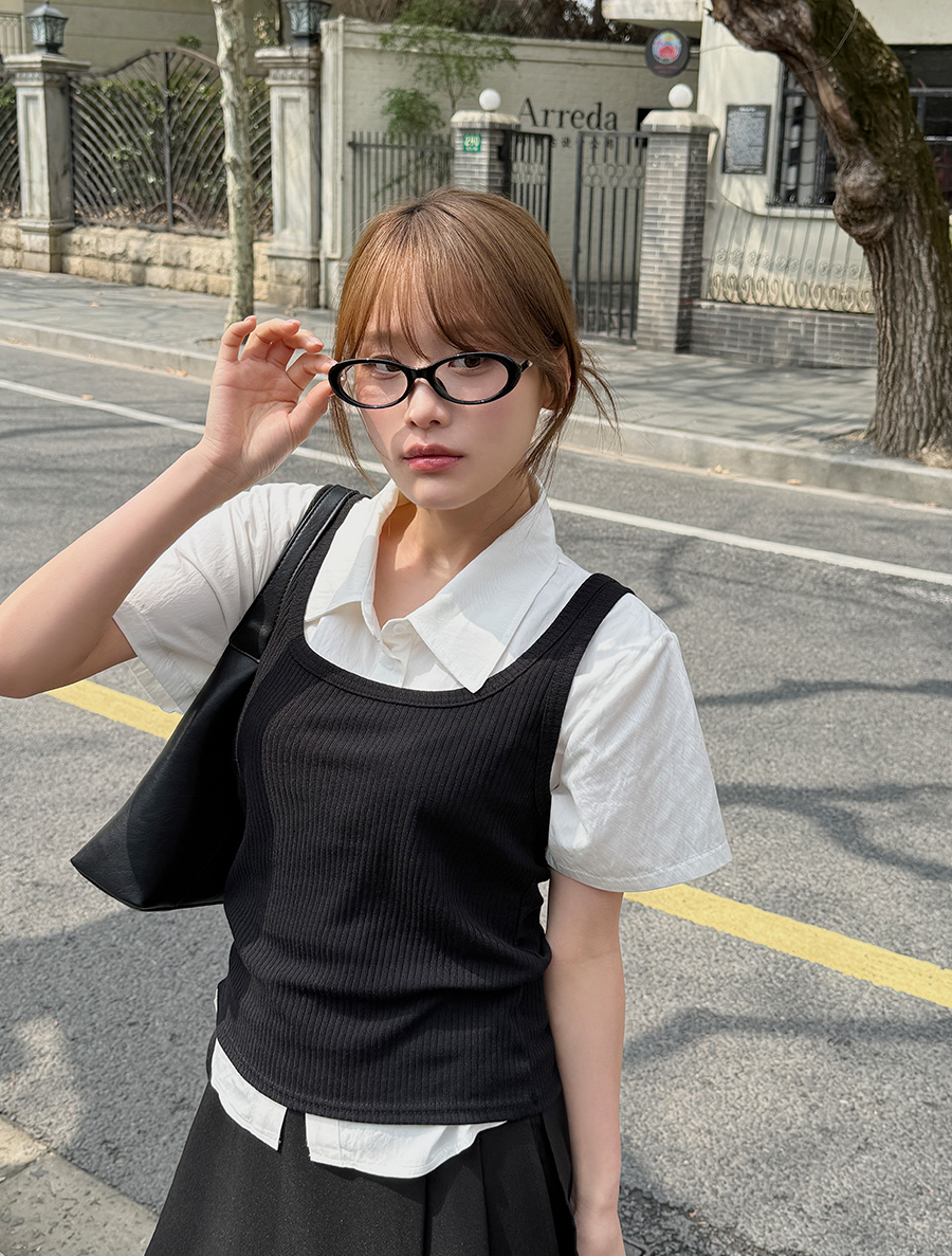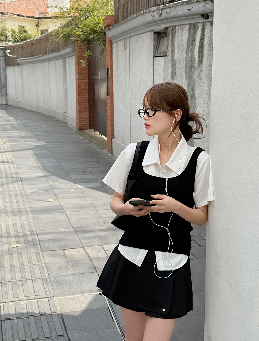 Merti Strap Semi-Crop Collar Shirt 관심상품