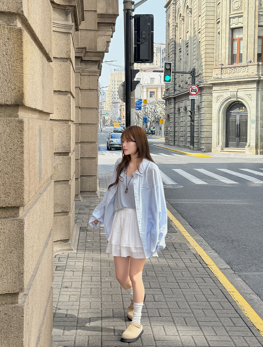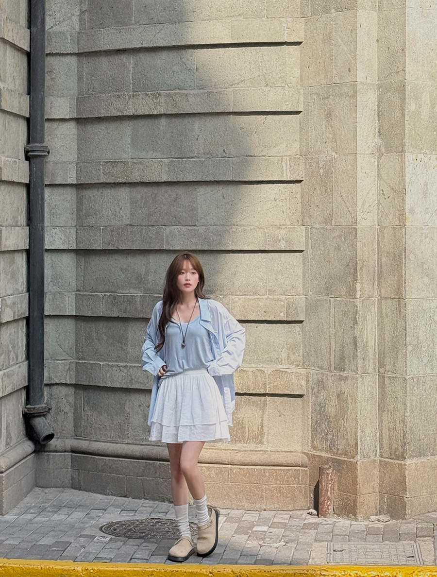 ▶ 앞뒤 기장에 차이를 둔 언발 기장감