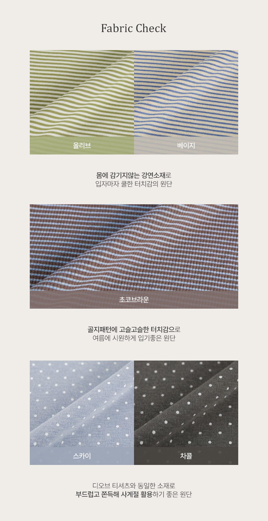 * 컬러별로 원단 혼용률 및 소재 느낌이 다르니