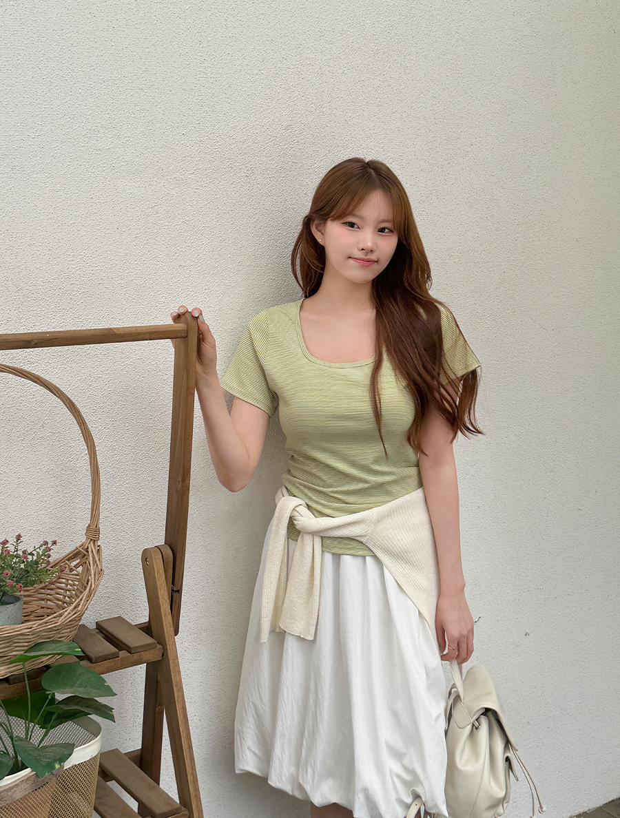 적당한 파임의 스퀘어넥으로 답답함 없이