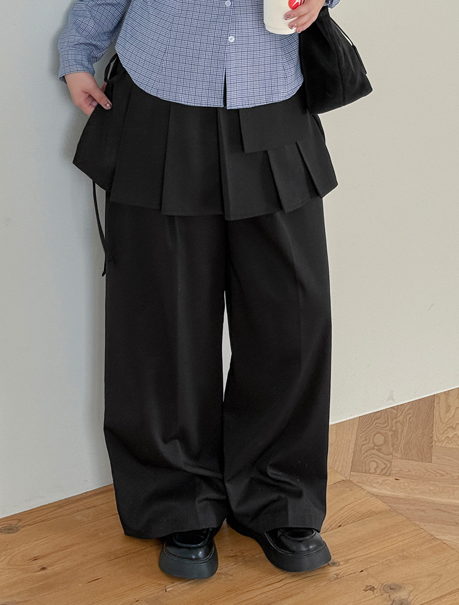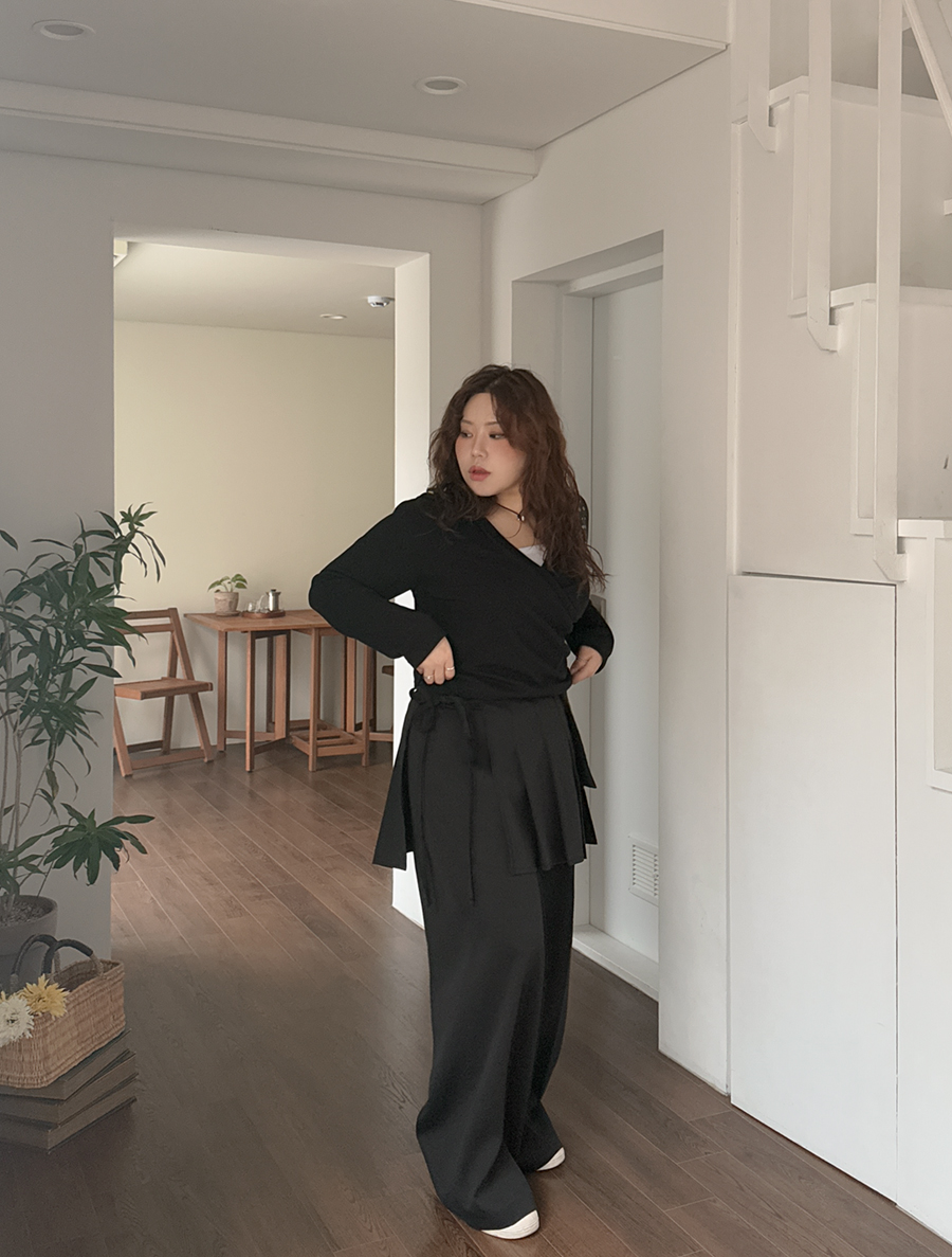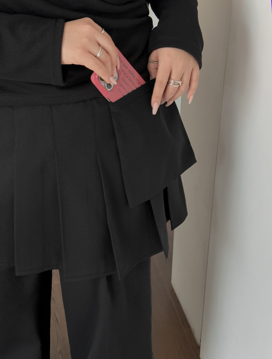 E-Teven Pleats Wrap Skirt Pants SET