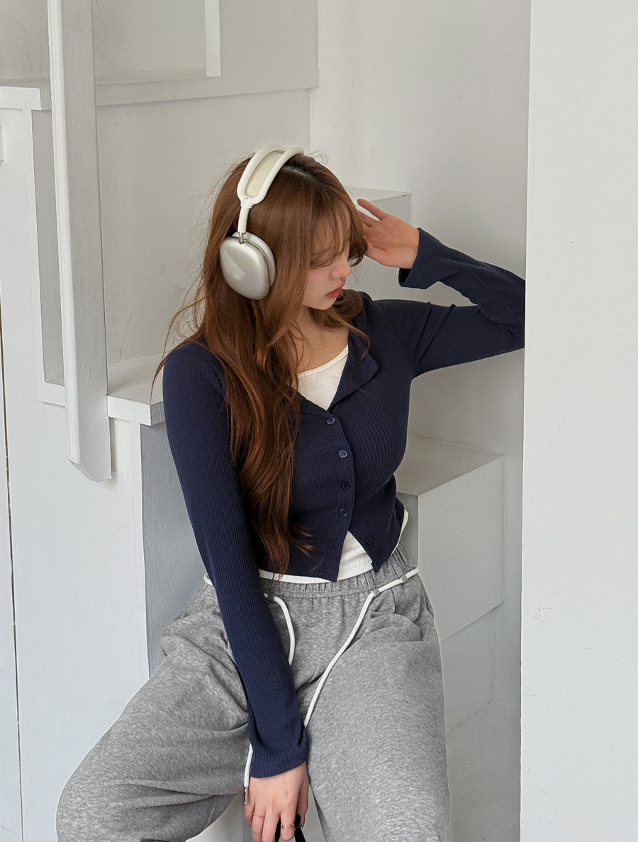 [EVELLET]Dnef Labels Contrast layered Cardigan T-shirt