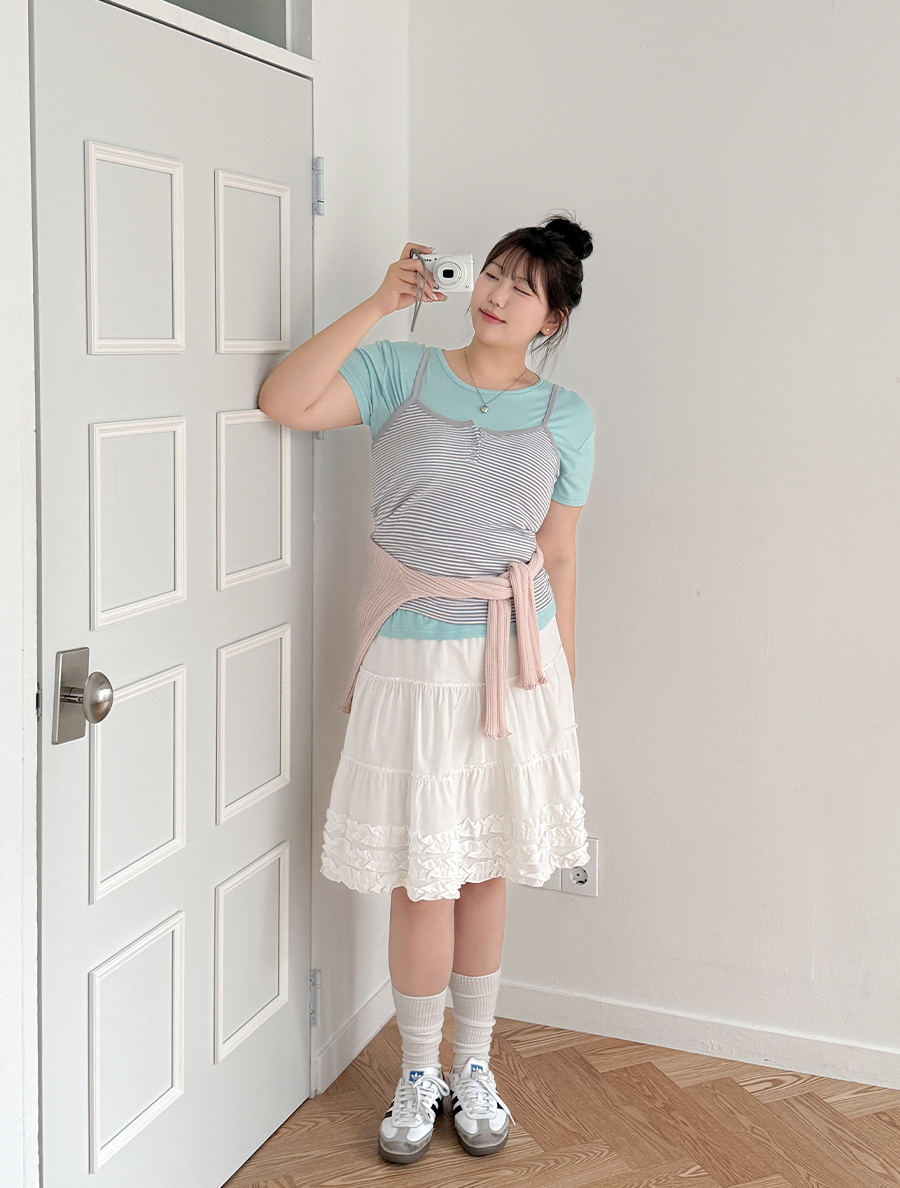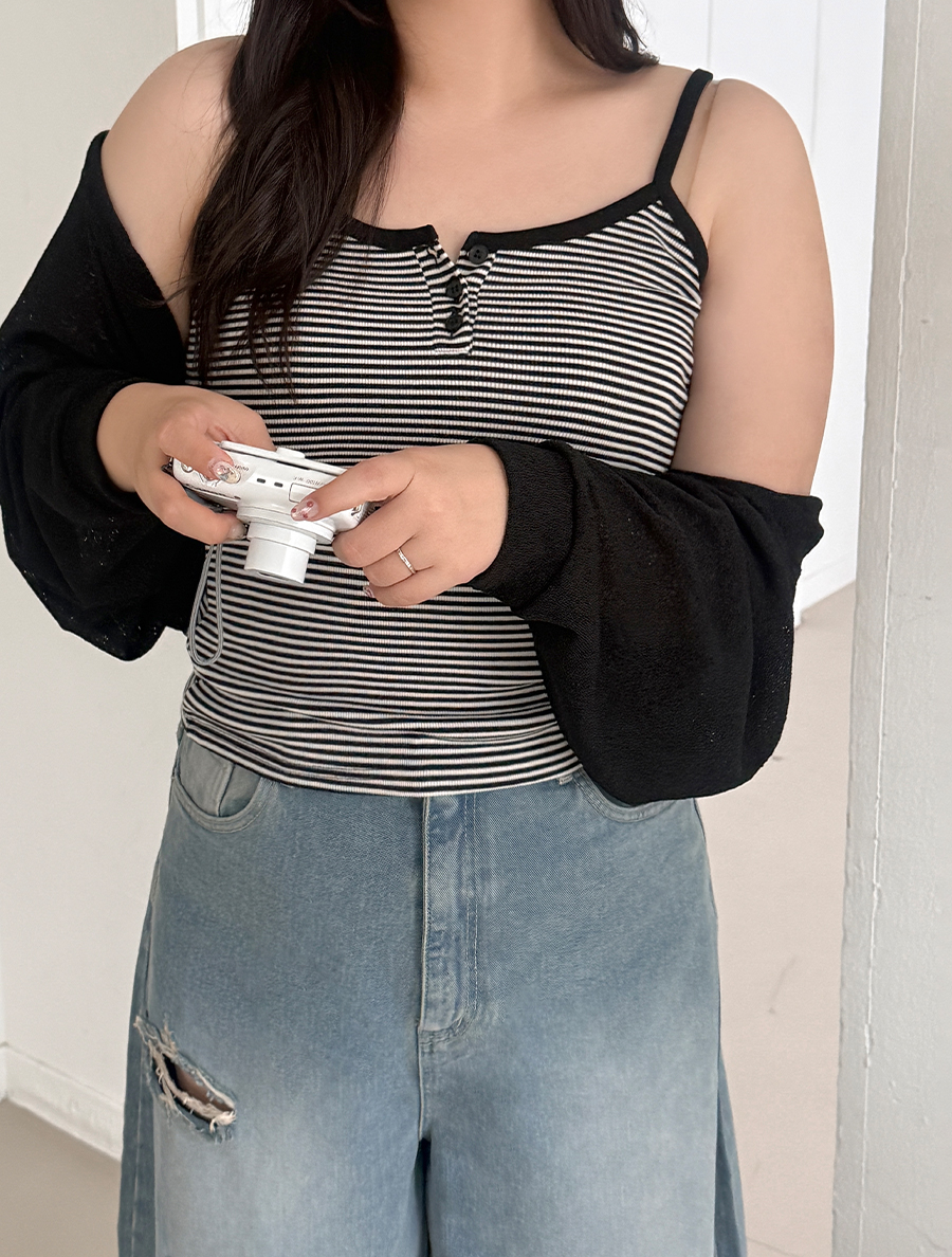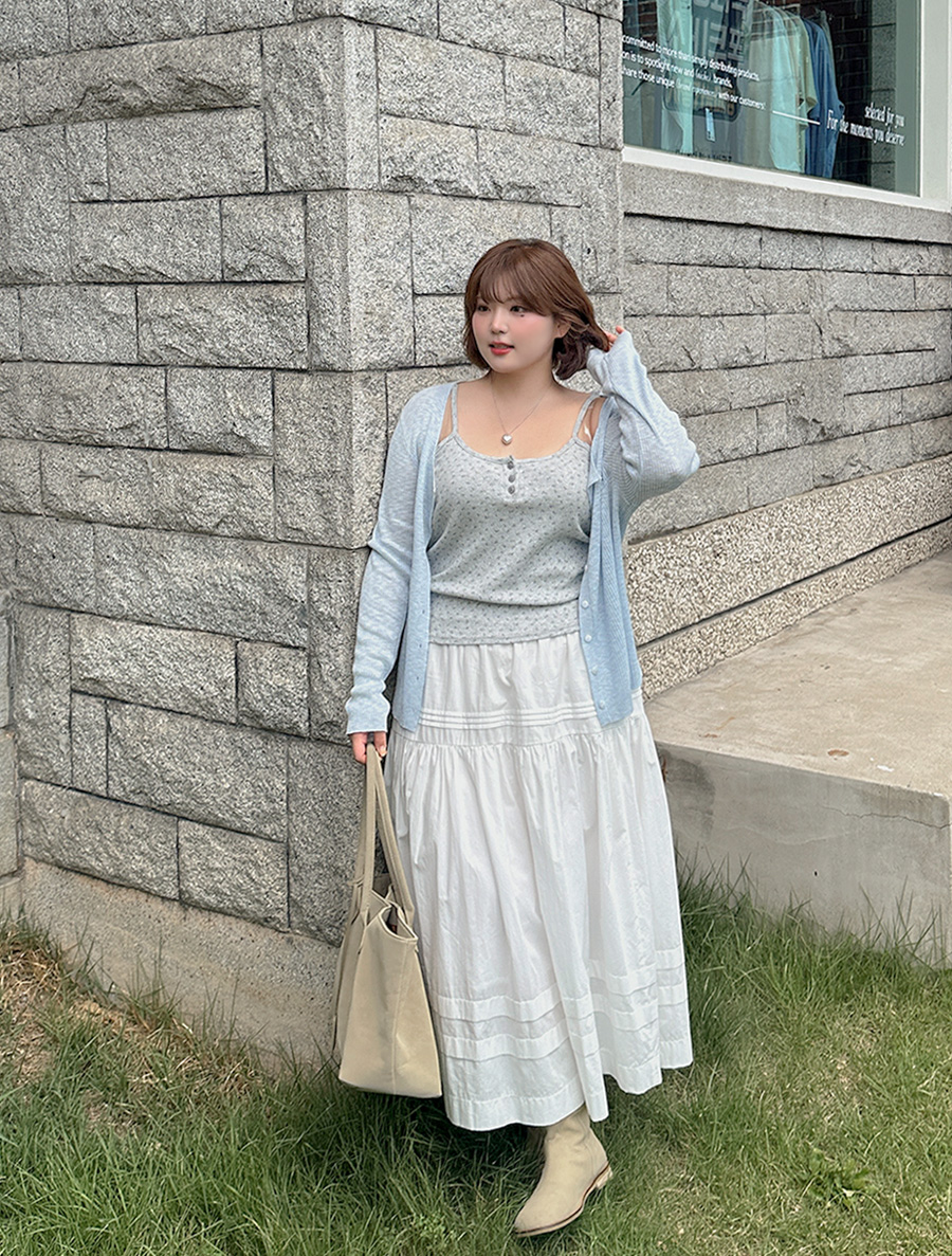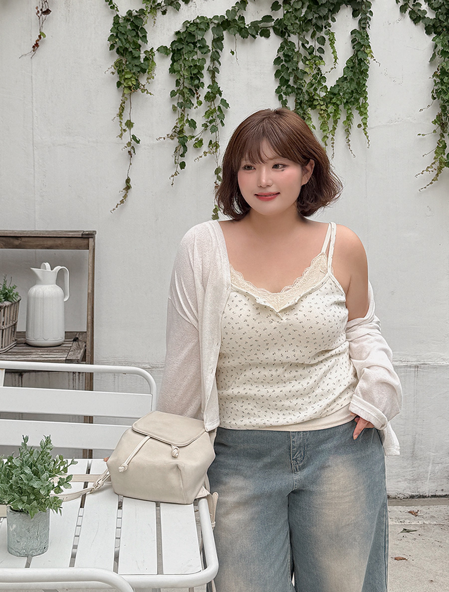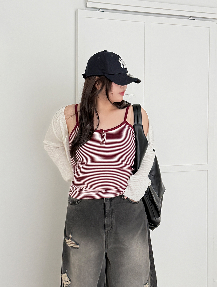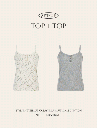 [EVELLET] Robi & Ribbed & Flower Button String Sleeveless