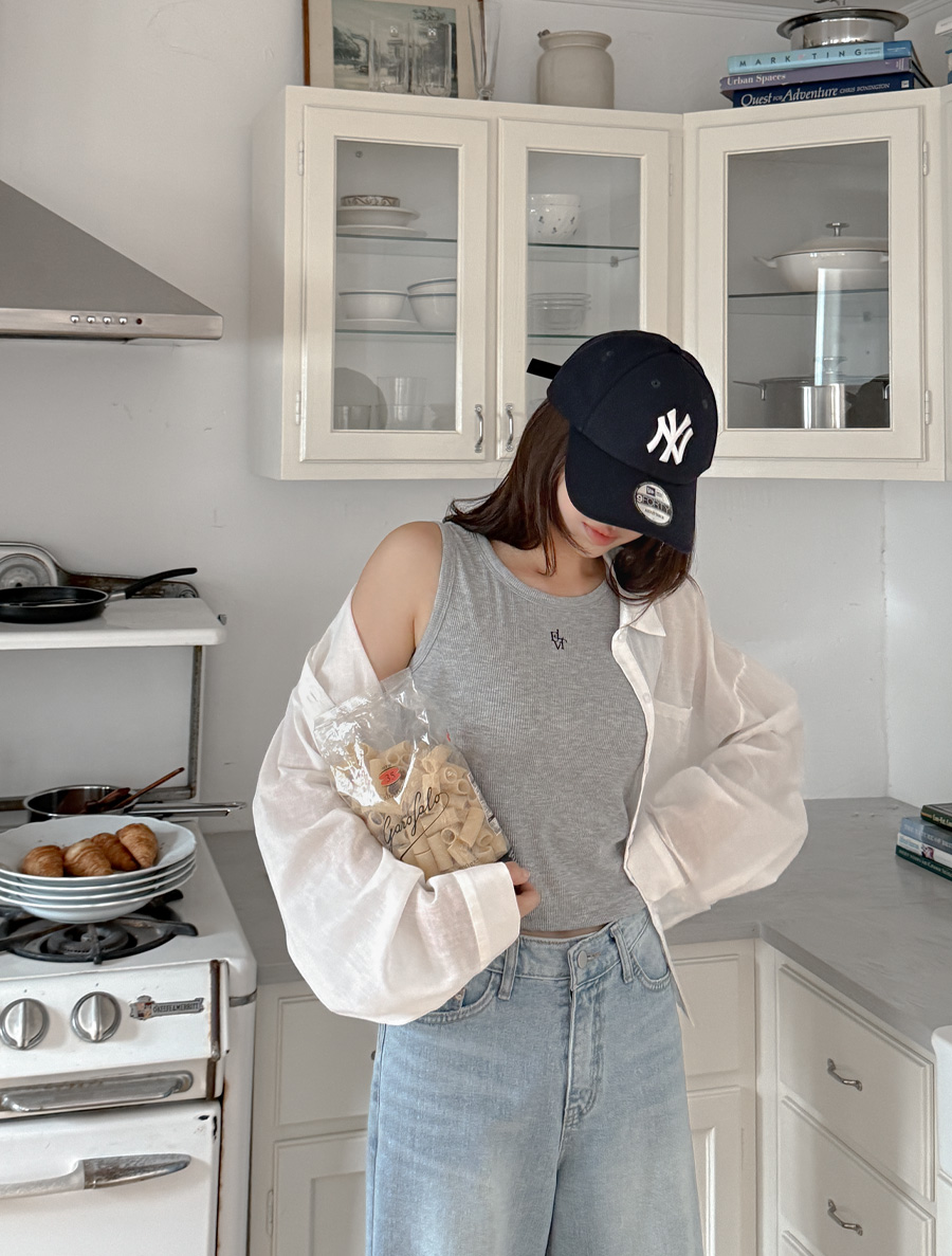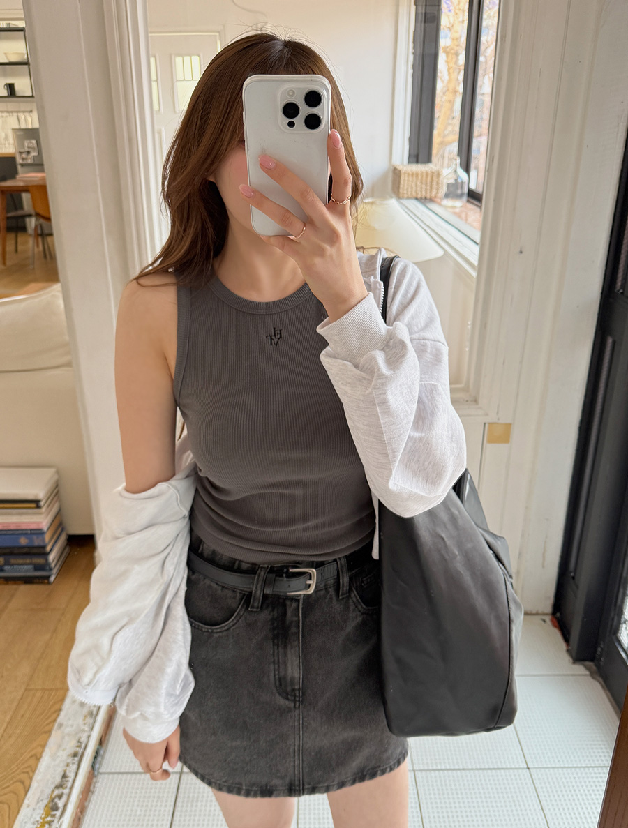 [EVELLET]Ondia Length Ribbed Embroidery Sleeveless