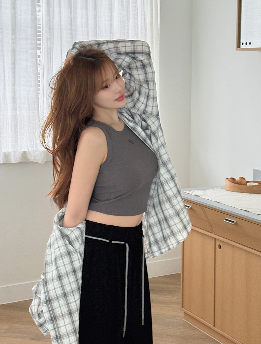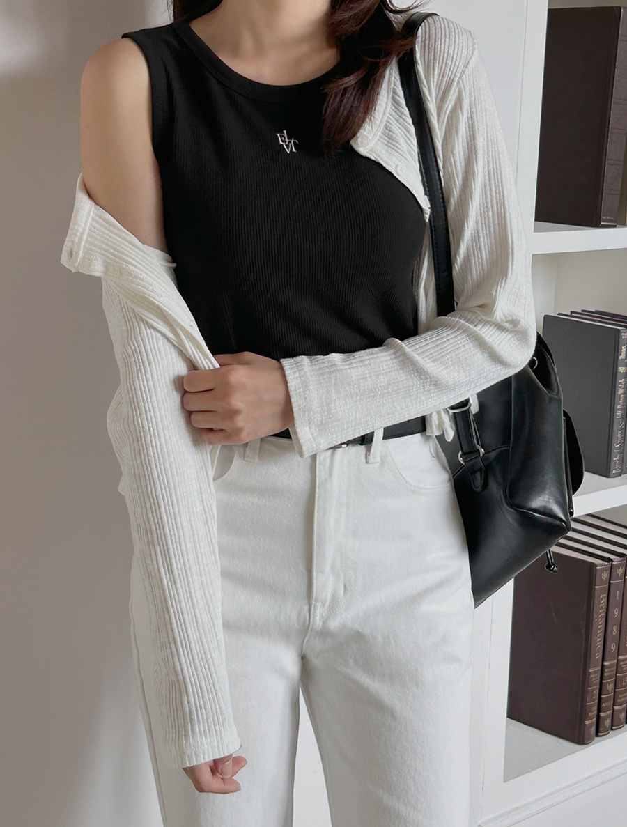[EVELLET]Ondia Length Ribbed Embroidery Sleeveless