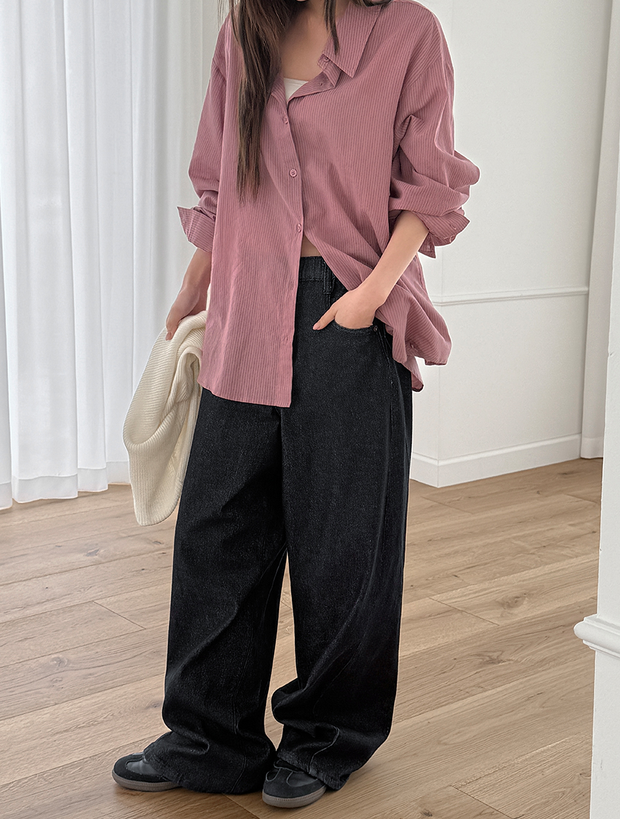 [Everyday Pants] Leaki Non-Fade Cut Wide Denim Pants