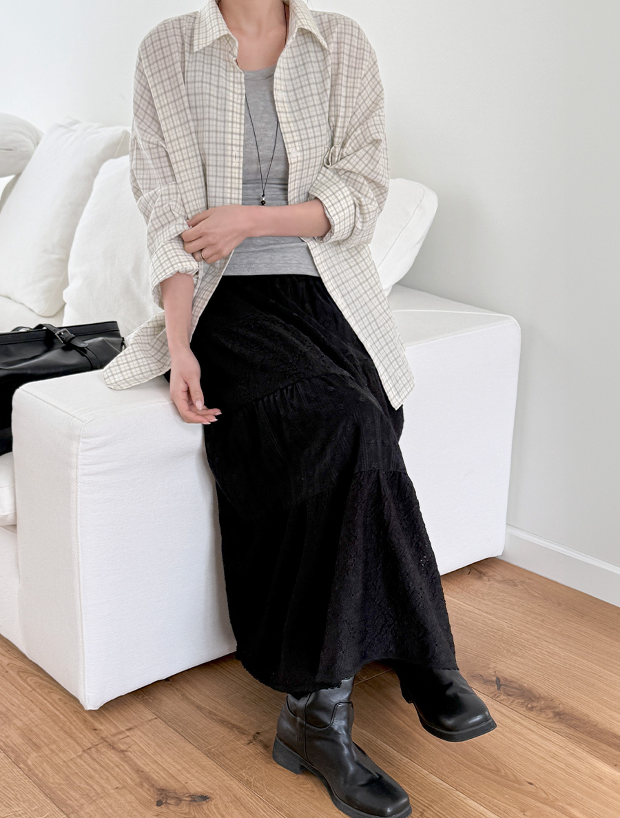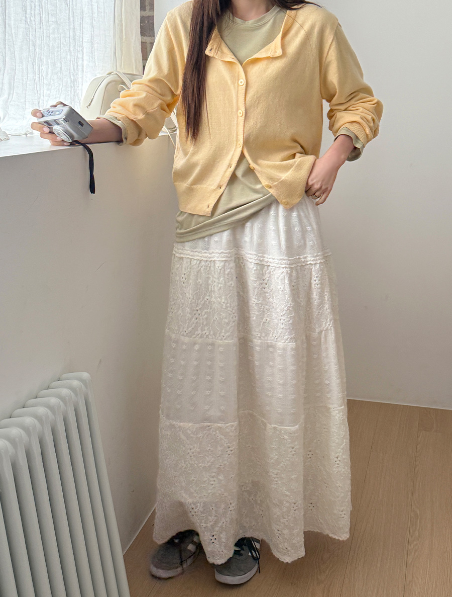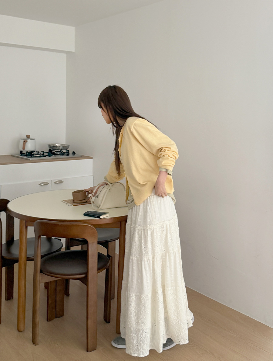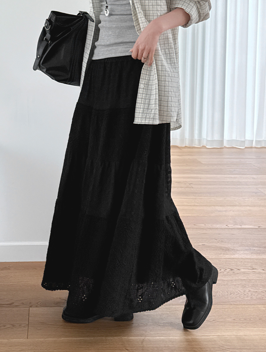 [EVELLET] New Plan Lace Waistband Long Skirt