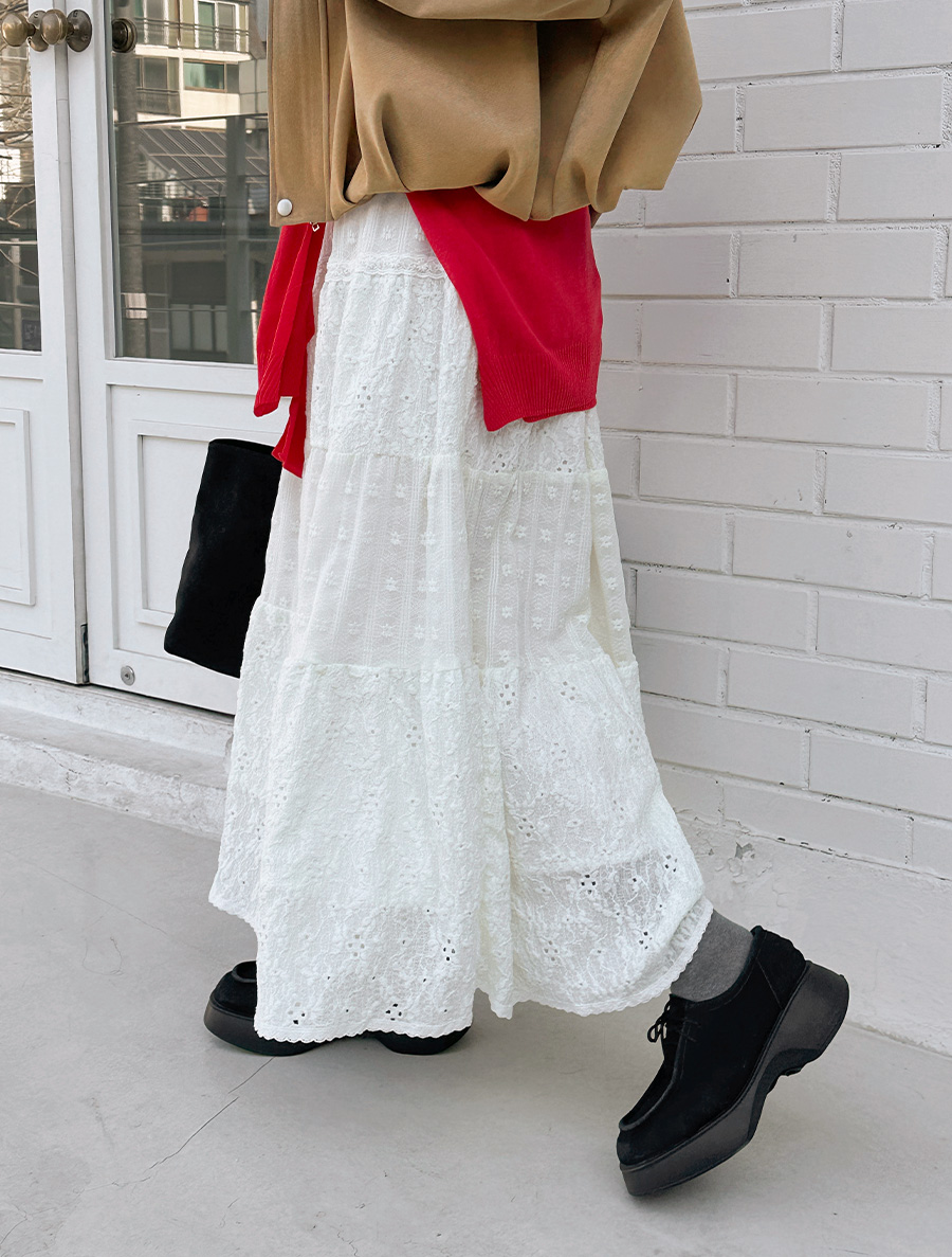[EVELLET] New Plan Lace Waistband Long Skirt