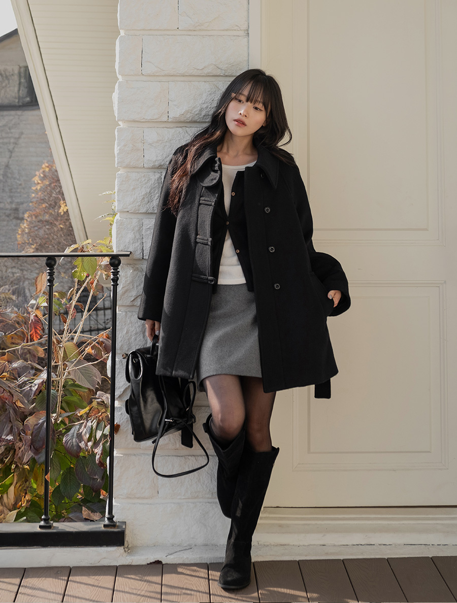[EVELLET]Novegen Wool quilting Harp Coat