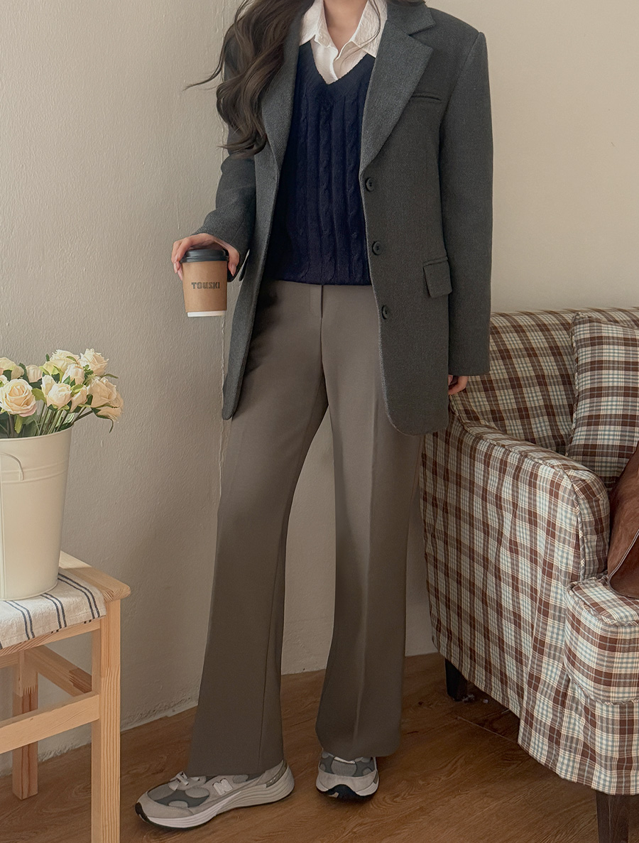 Chessian fleece Flared Slacks