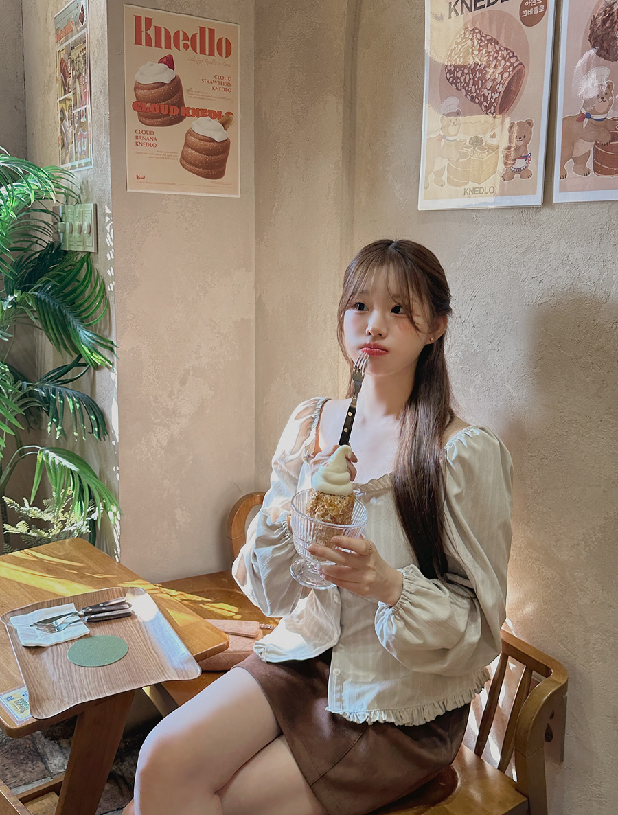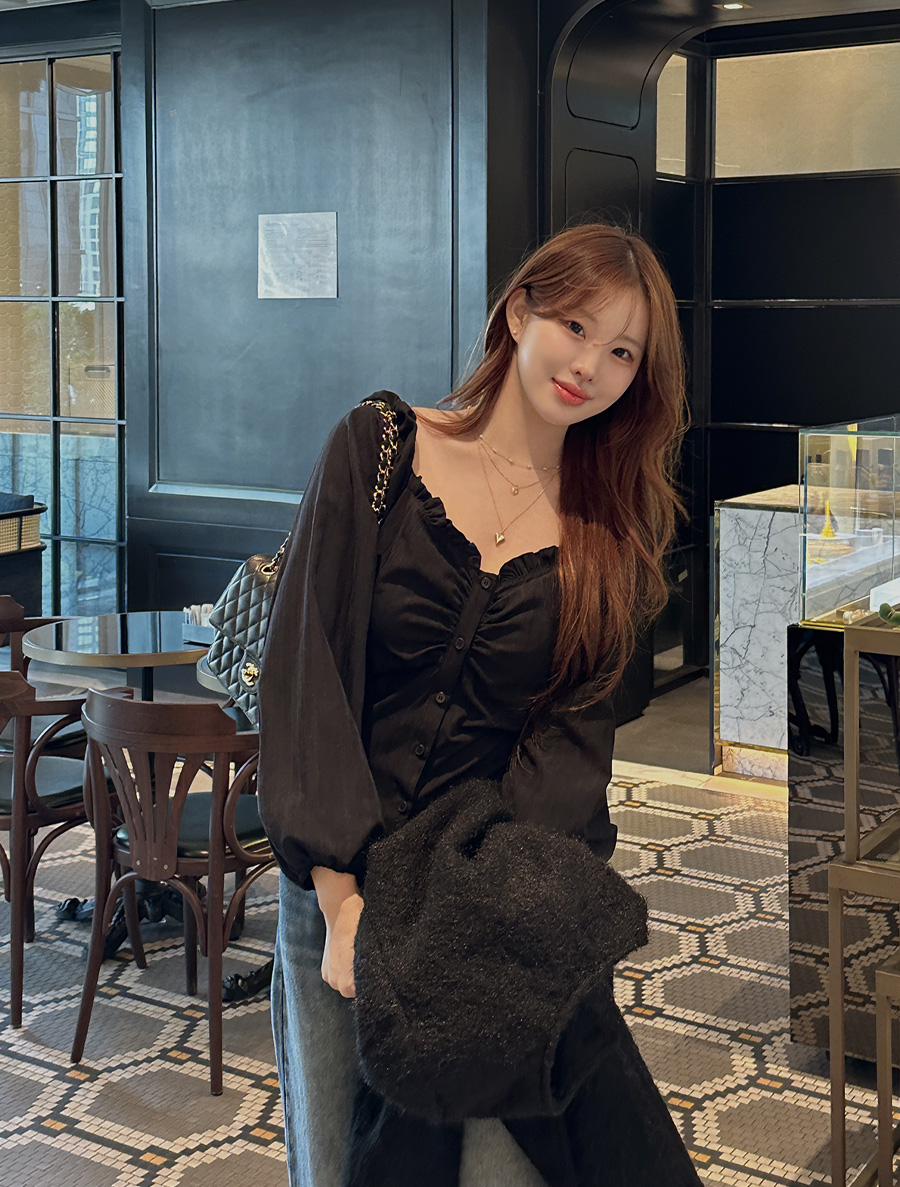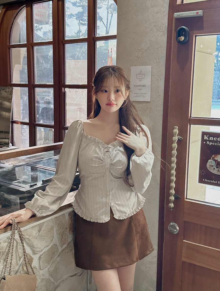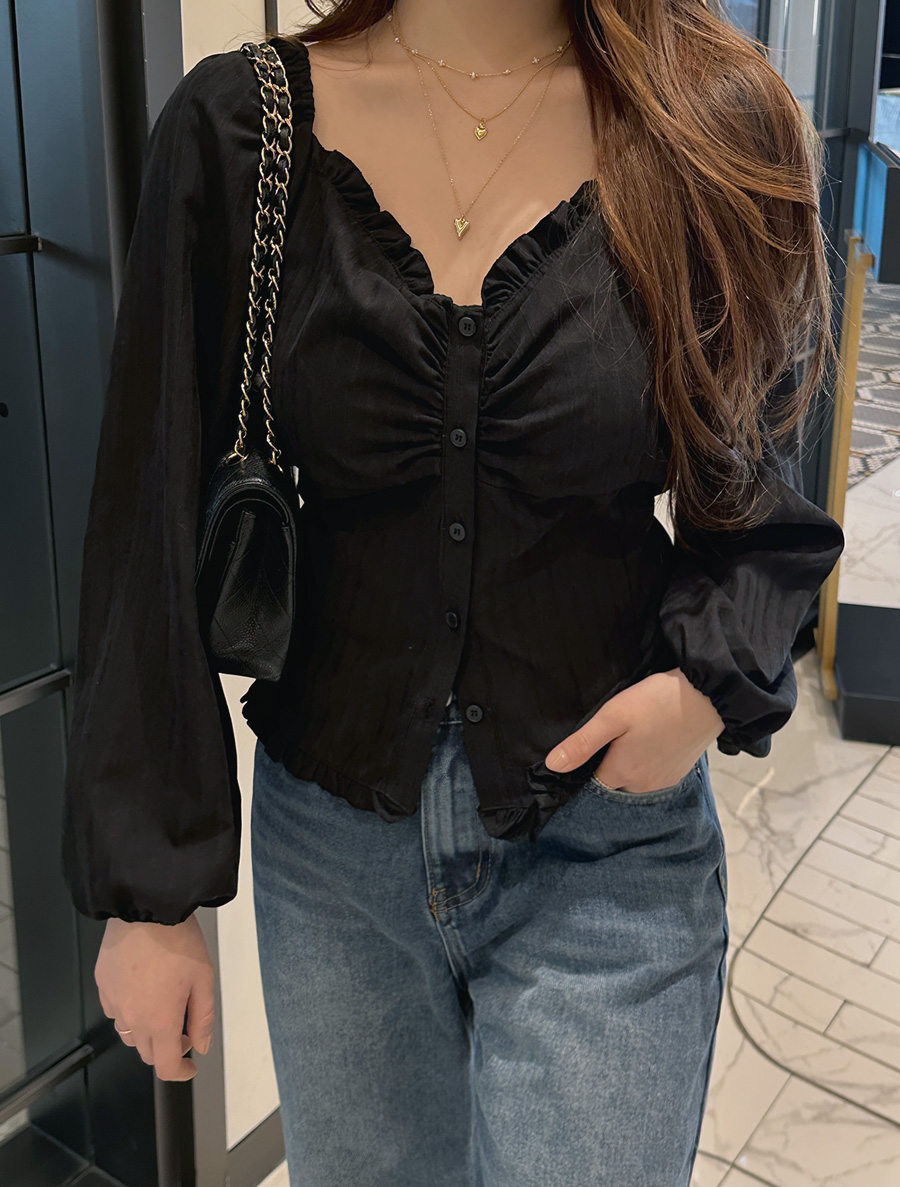 Jacquard Frill Shirring Blouse in Jinti