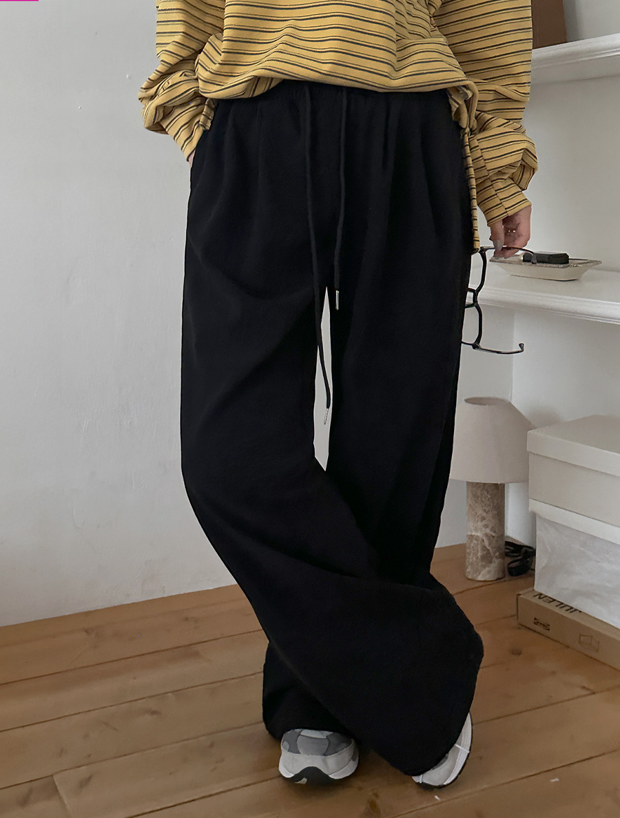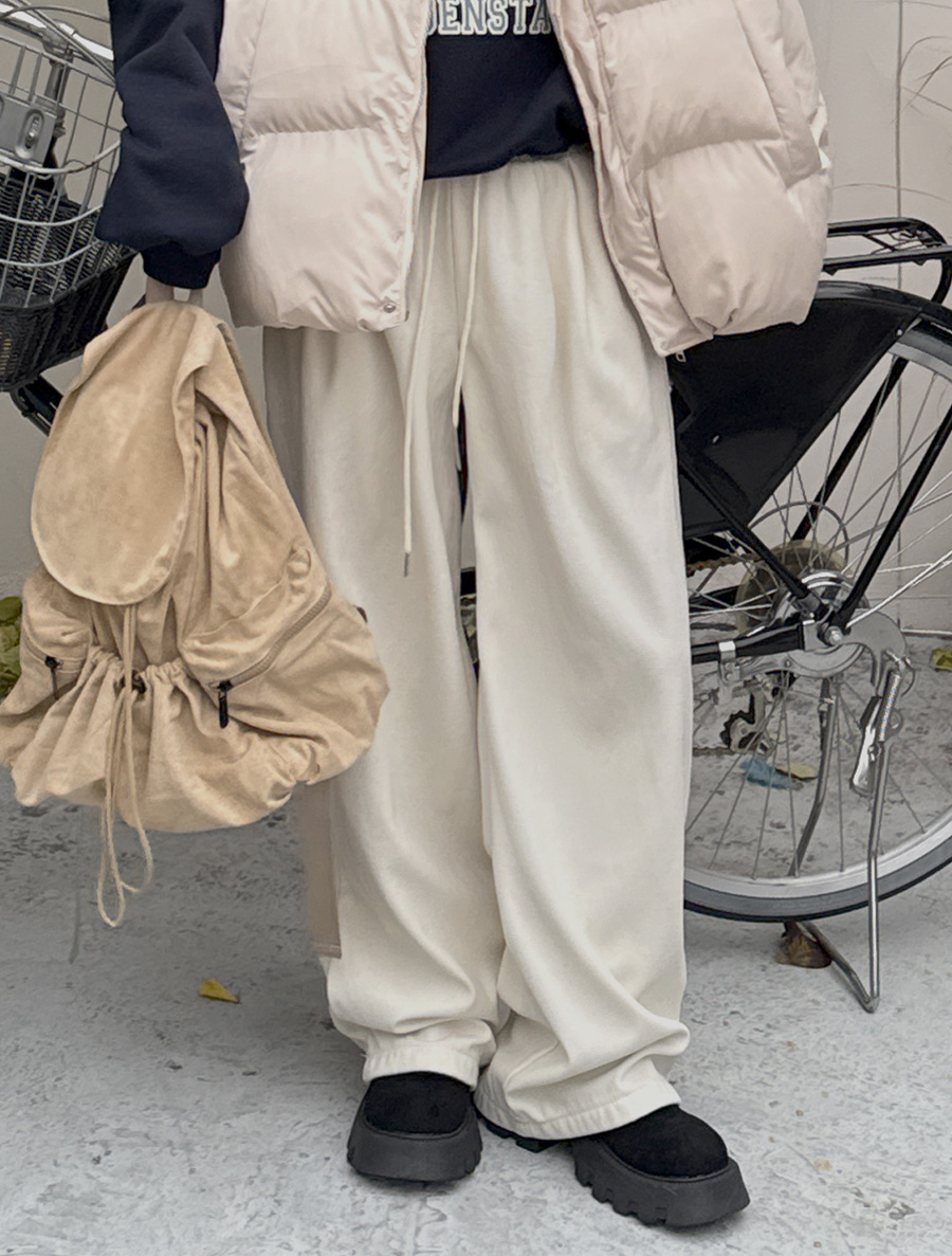 Munenti Length Pintuck Corduroy Raised Fleece Waistband Pants