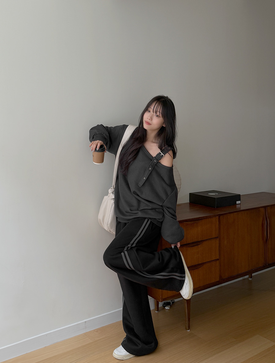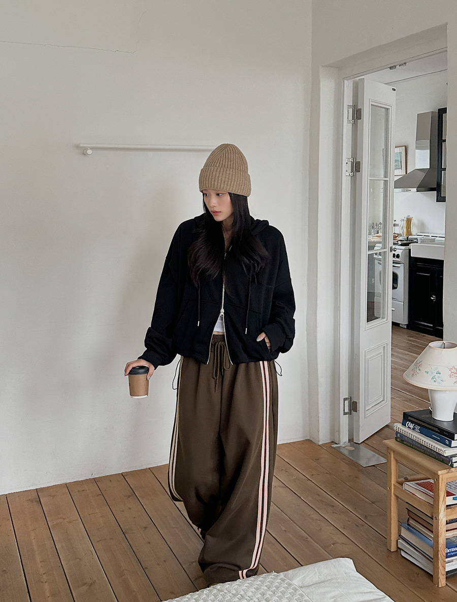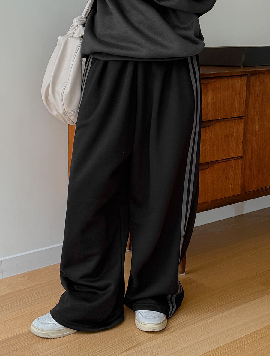 [EVELLET] Lemoa fleece wide snap contrast track pants