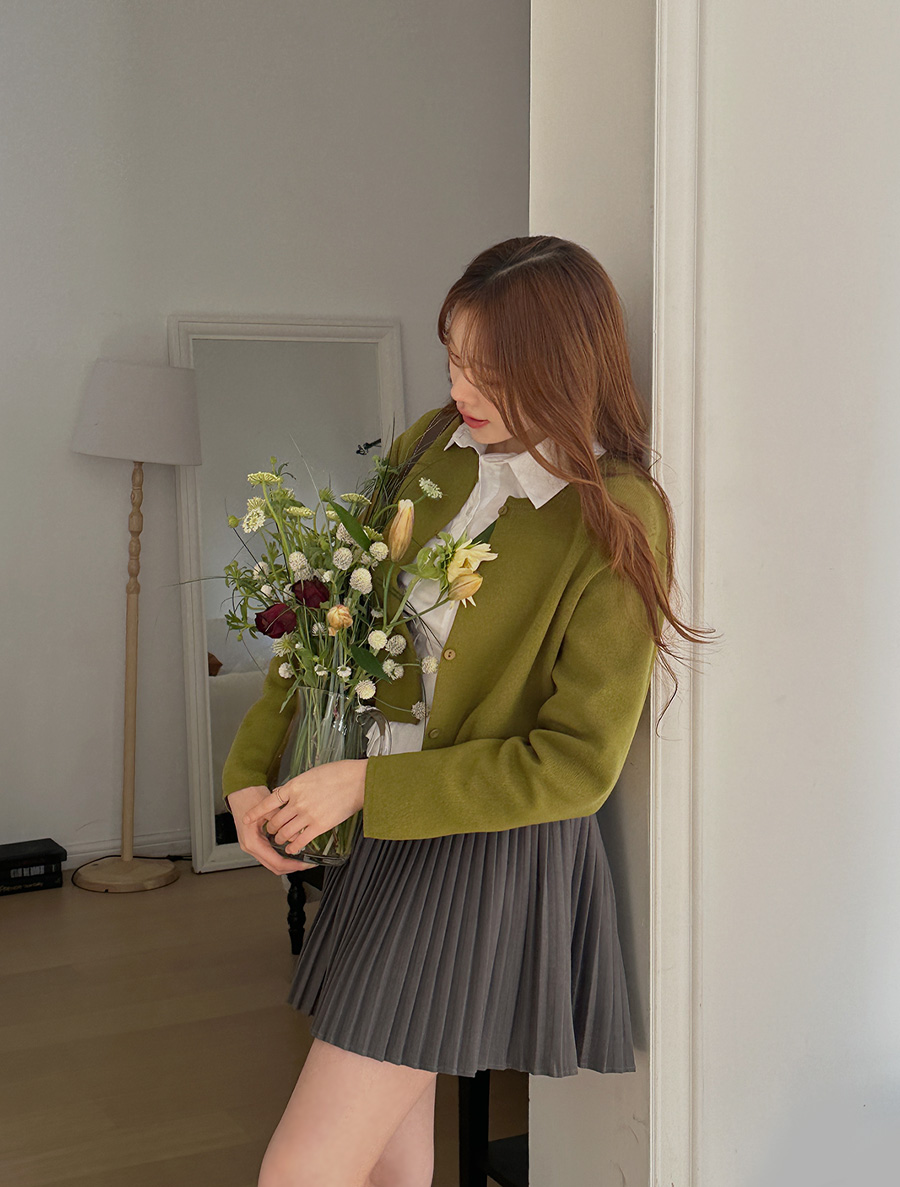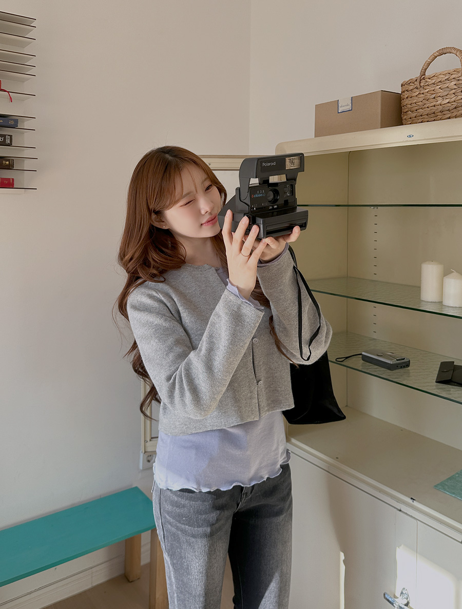 [EVELLET] Skid Viscose Ring Button Knit Cardigan