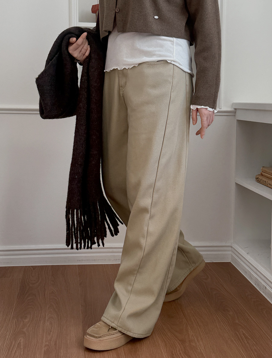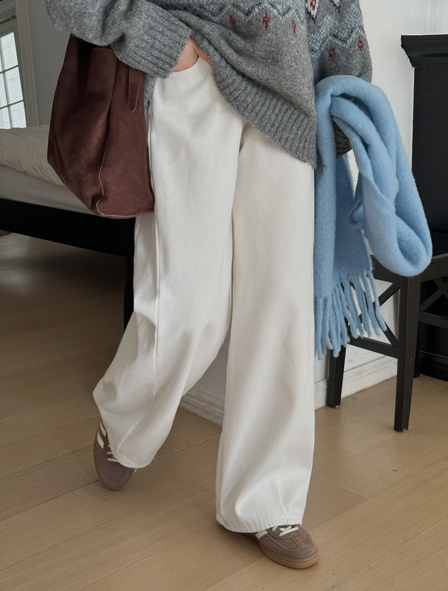 Tsurie length fleece wide cut cotton pants