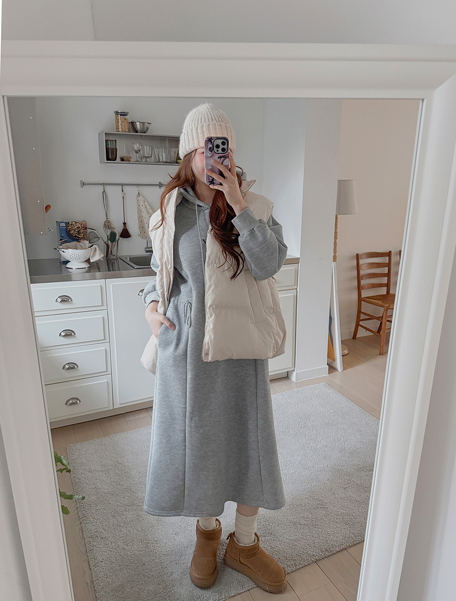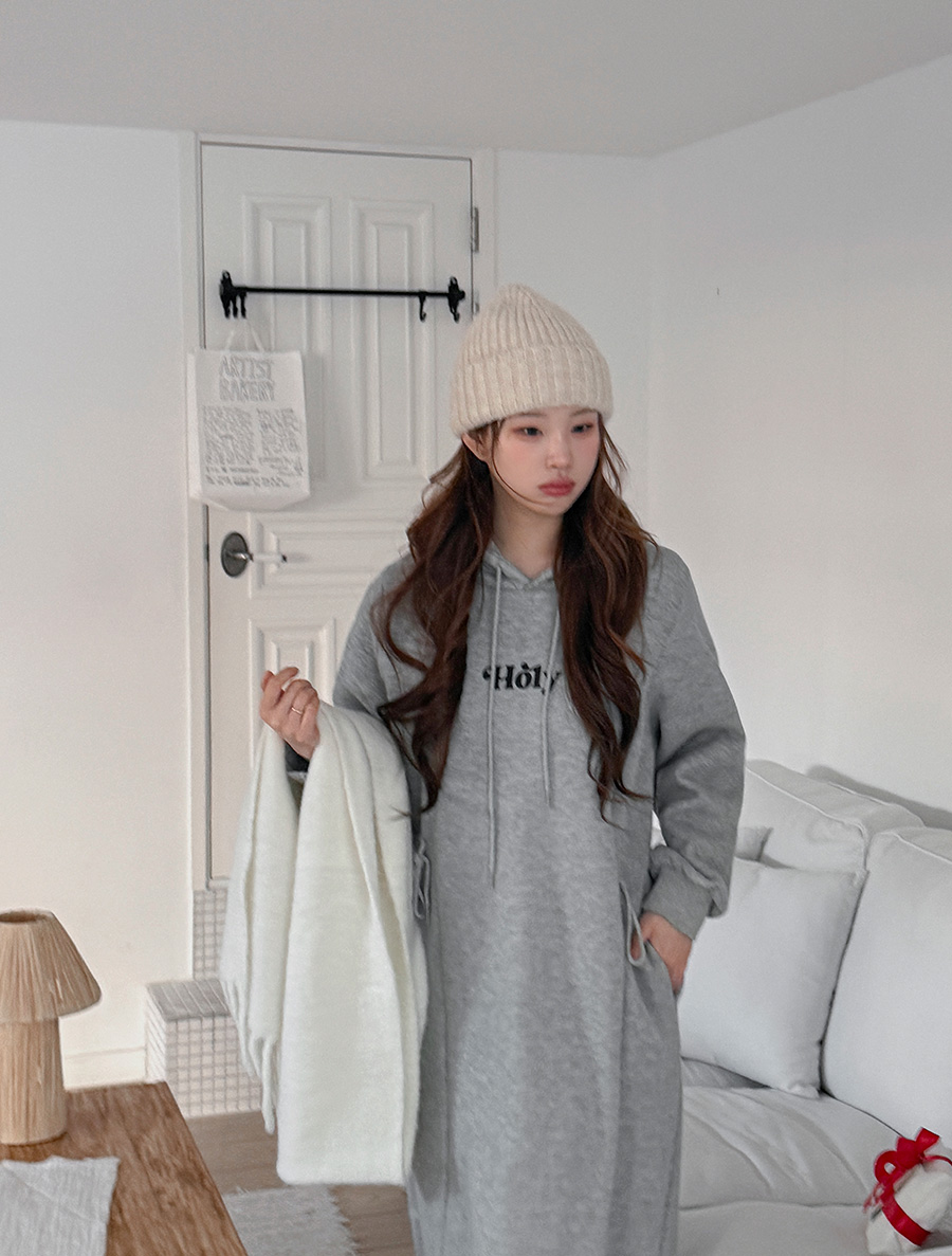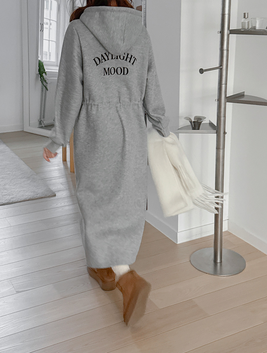 Kenuha fleece graphic print slit hood long dress