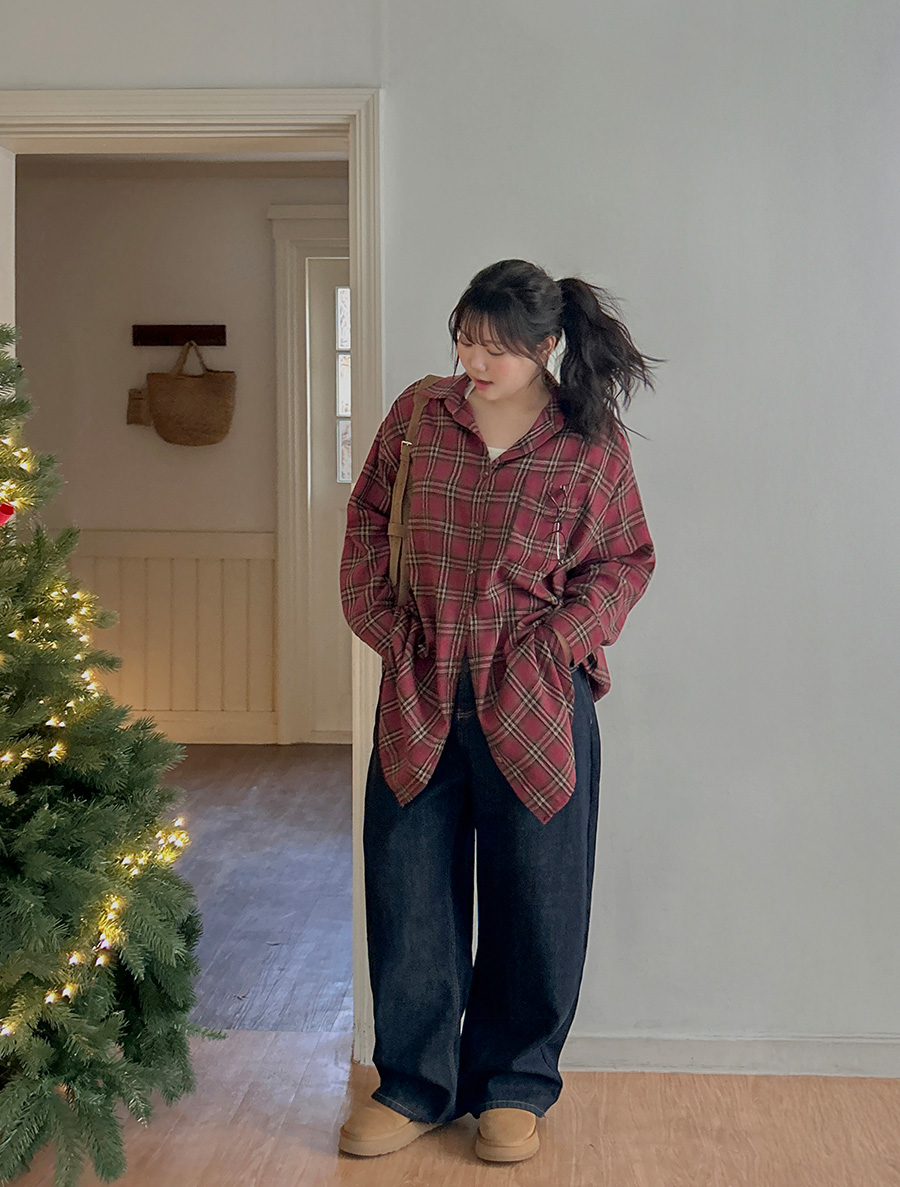 Ryutia Plaid Check Unbalance Long Shirt