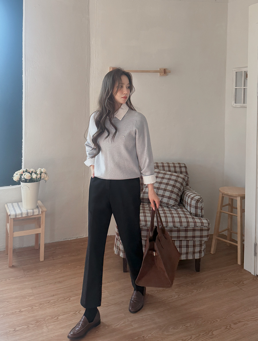 Yufian fleece Straight Cropped Slacks