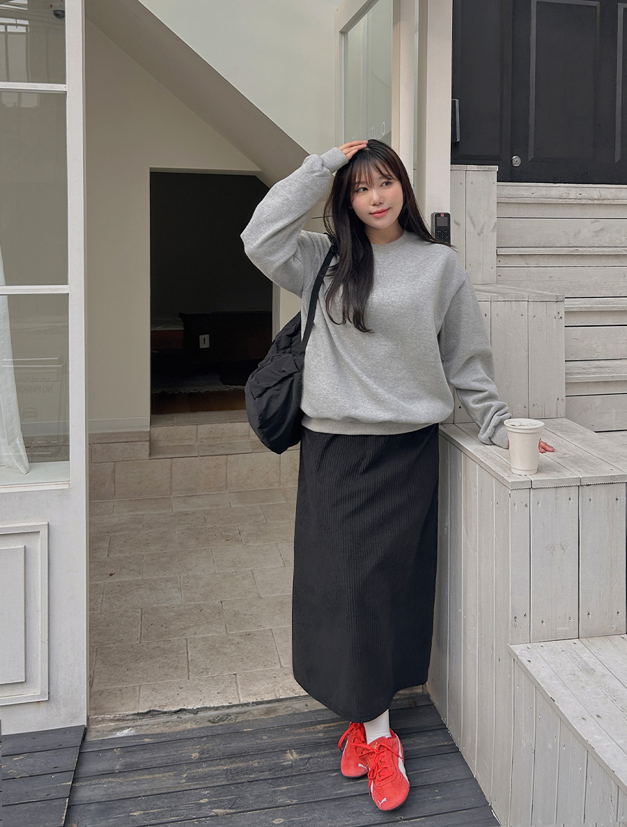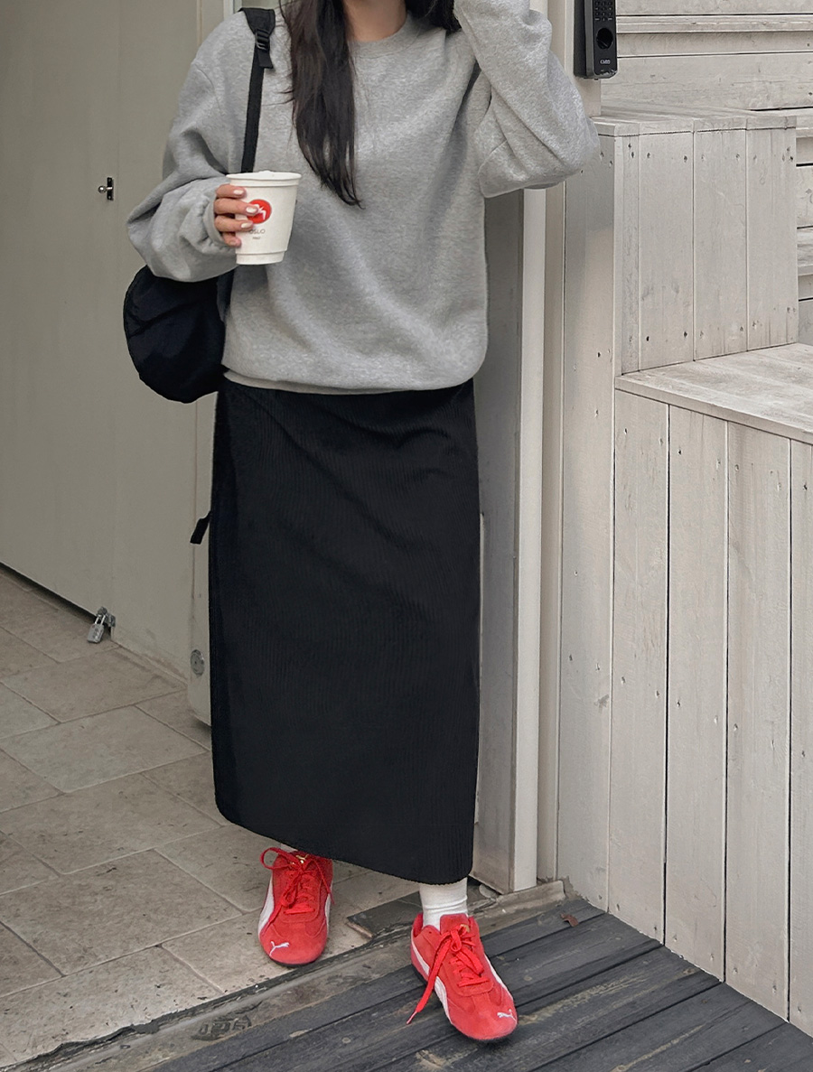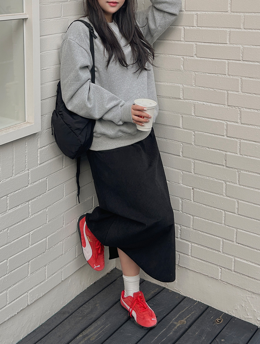 Beauty's Sheepskin Corduroy Long Waistband Skirt