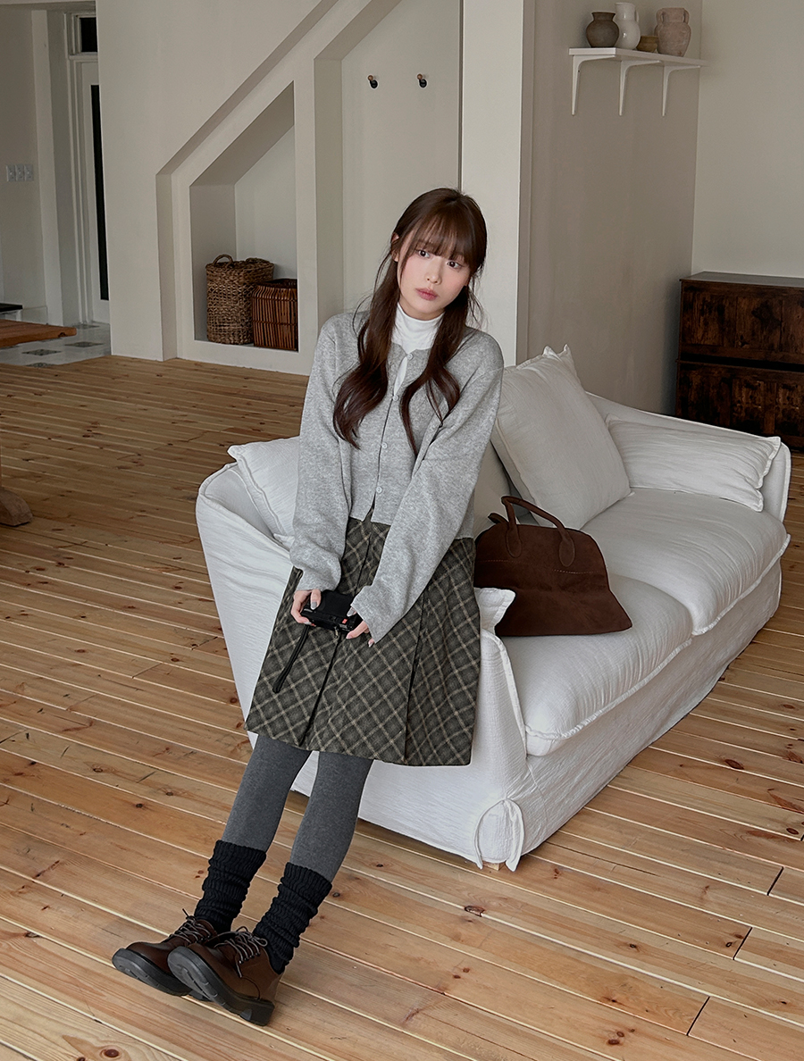 Renewa Plaid Check Pintuck Skirt