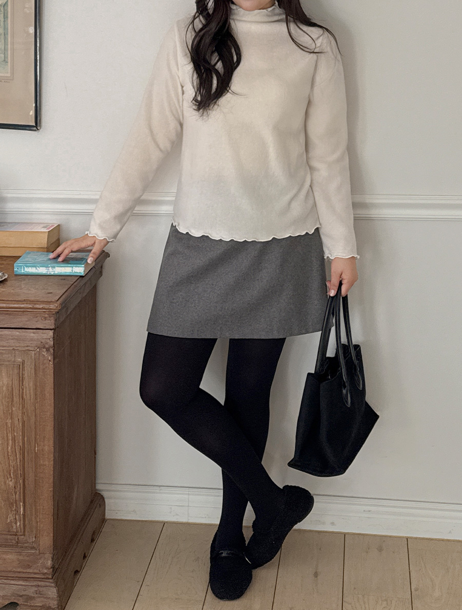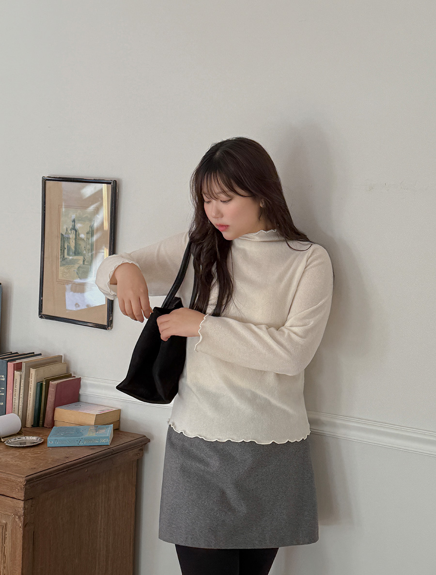 Hendigen Peach Fleece Wave Mock Neck T-shirt