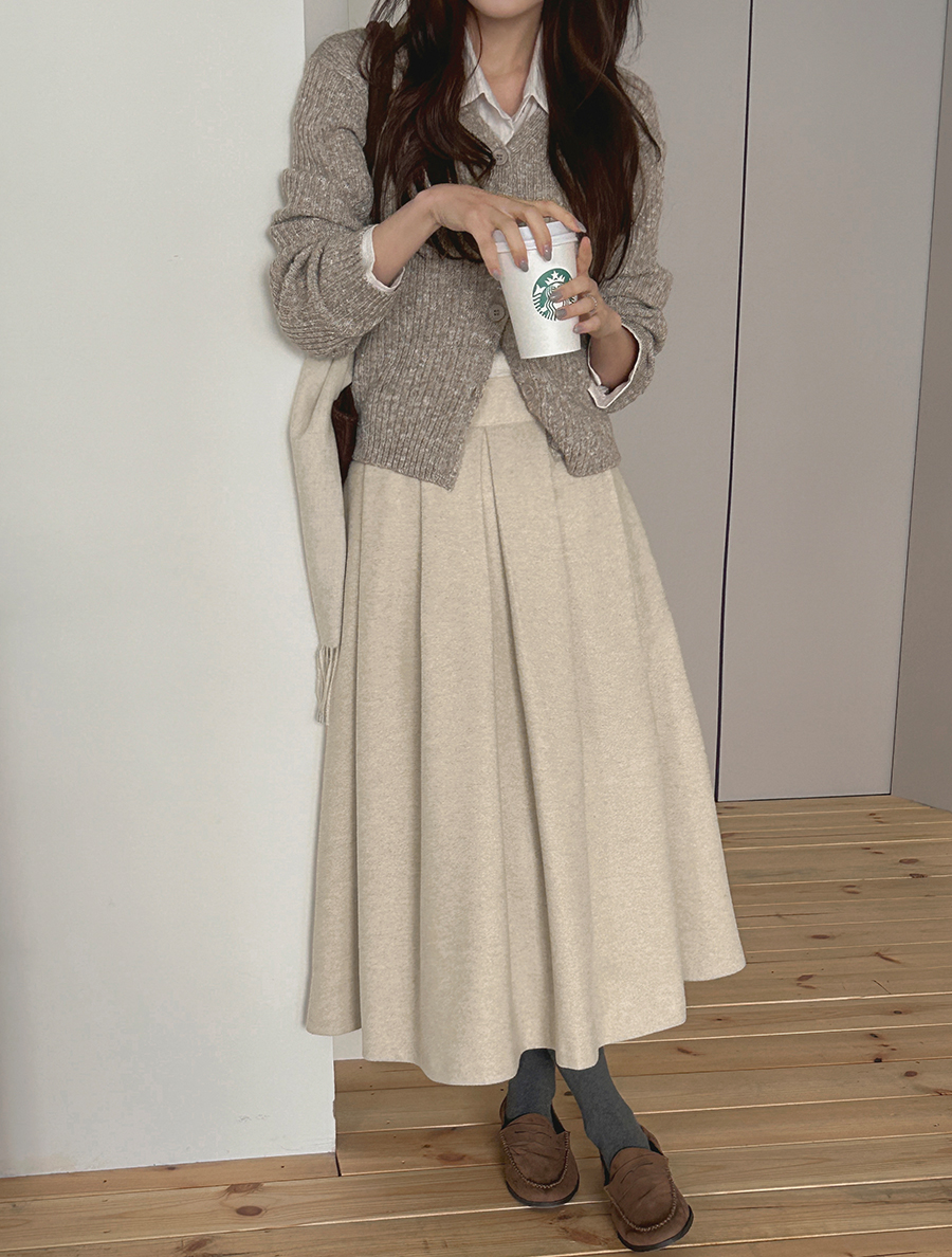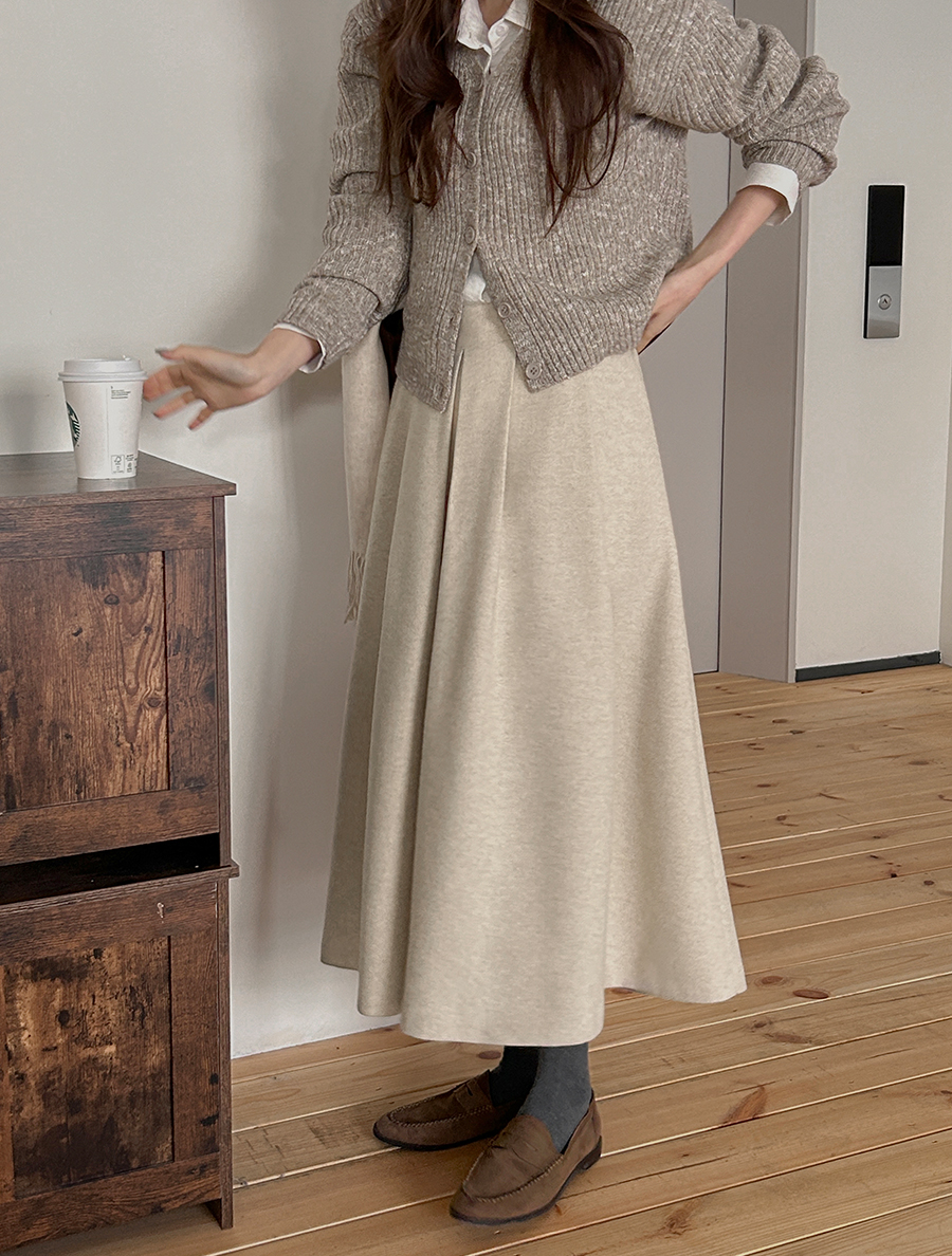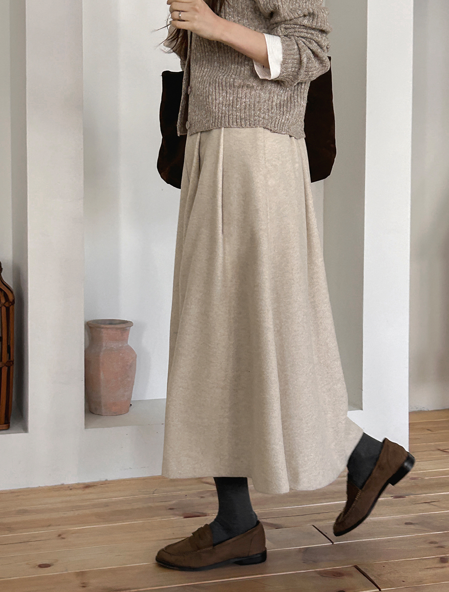 Pepnew fleece pintuck long skirt