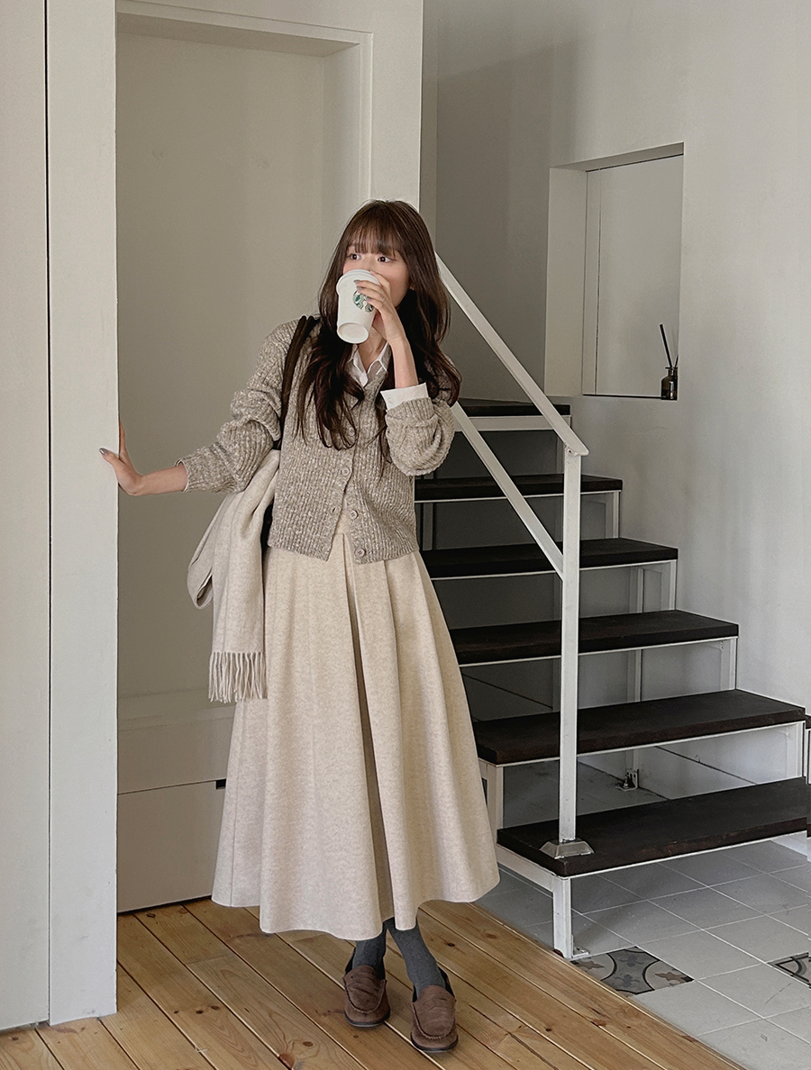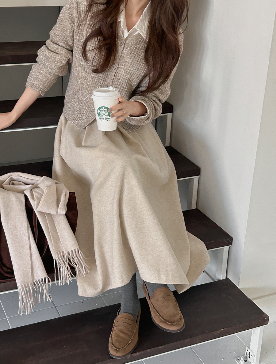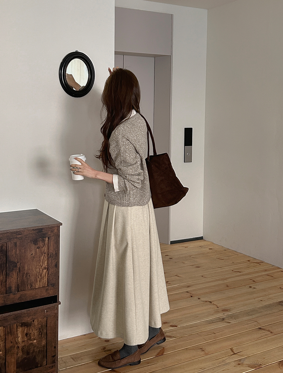 Pepnew fleece pintuck long skirt