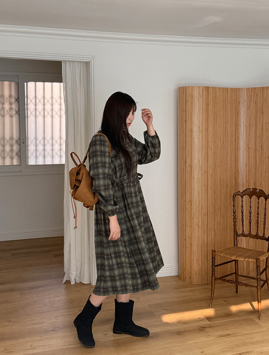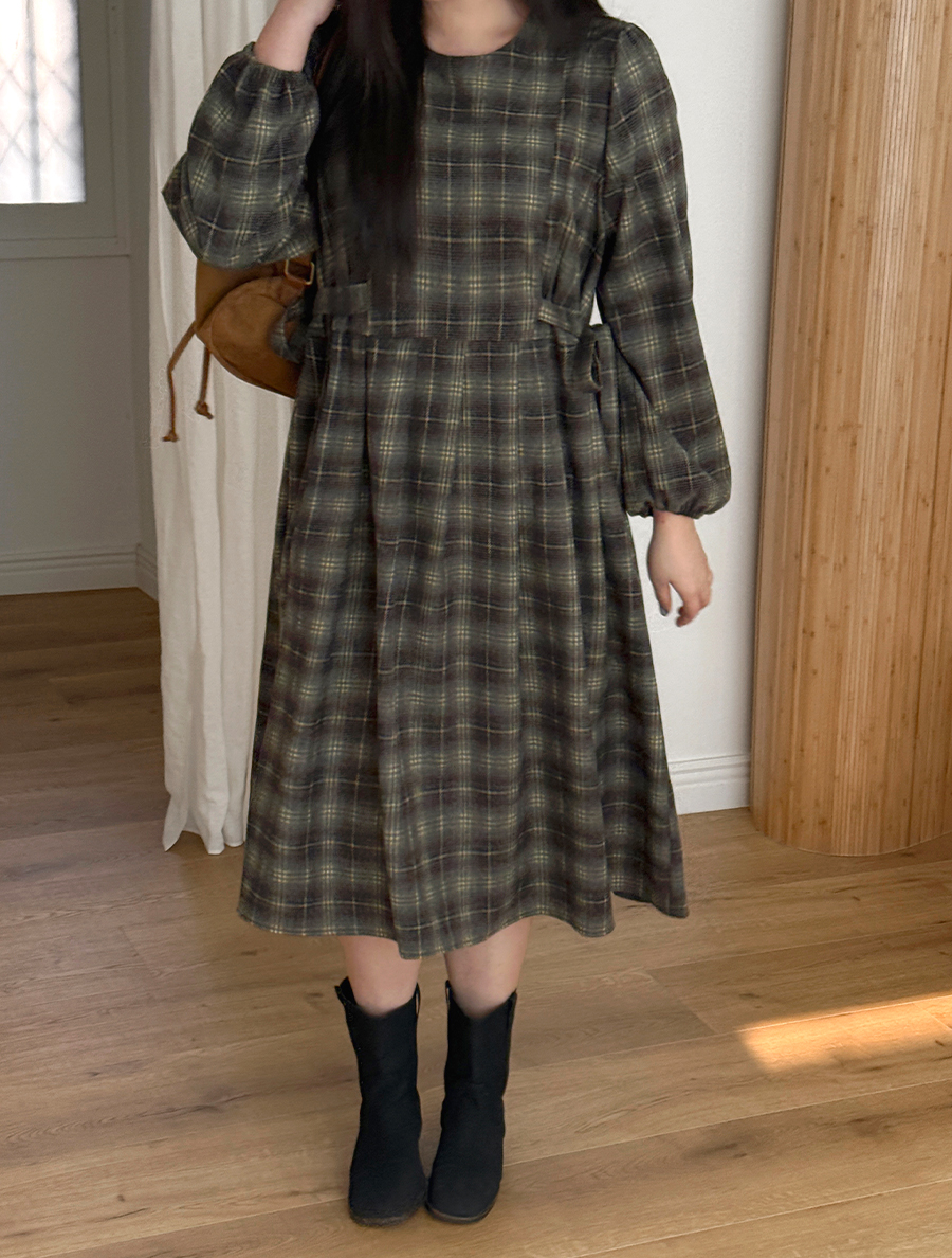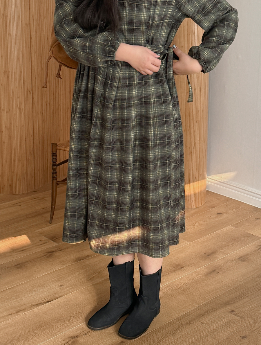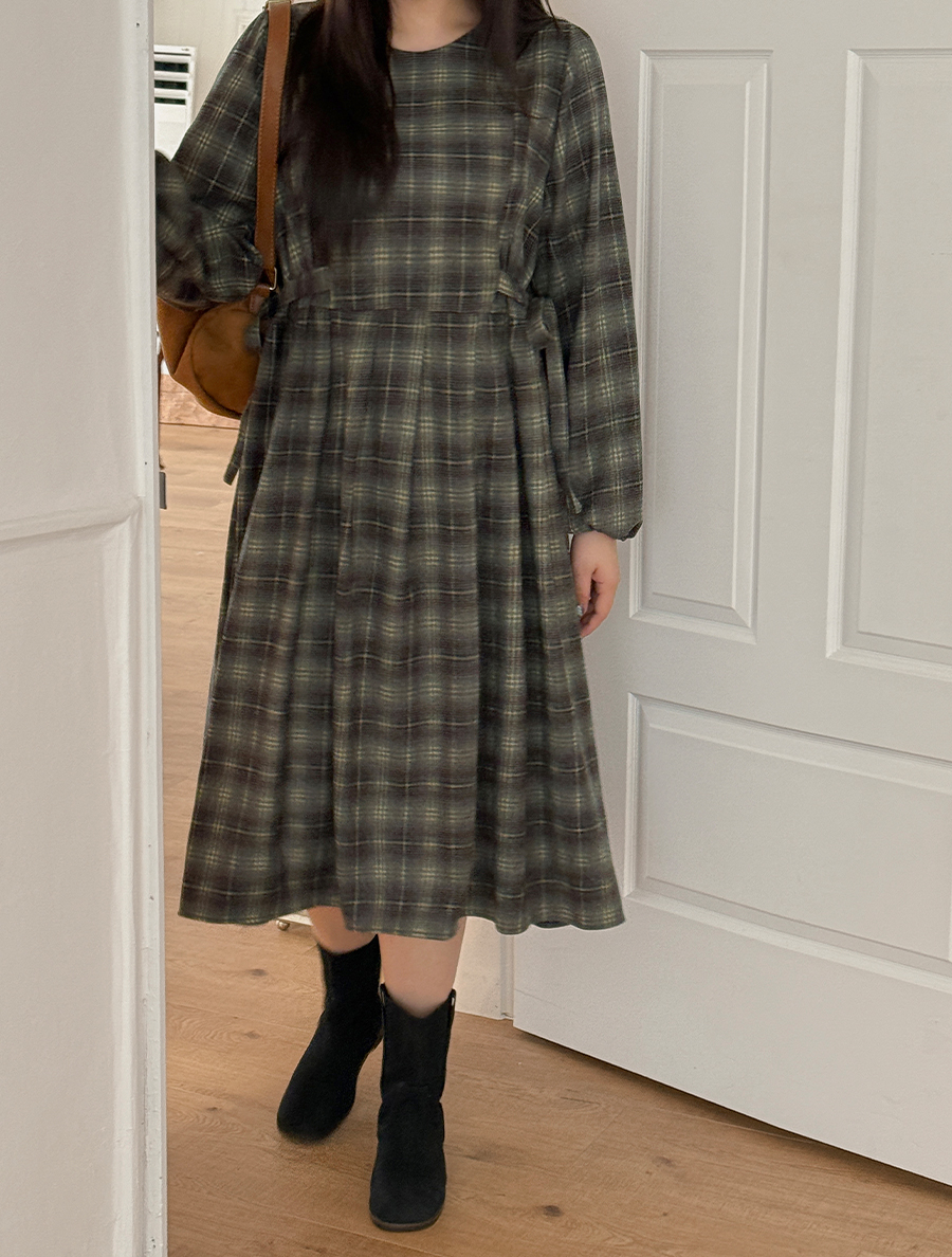 Onet Plaid Check Bowknot Pintuck Long Dress
