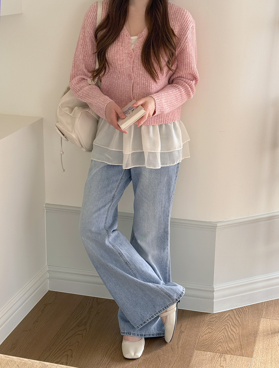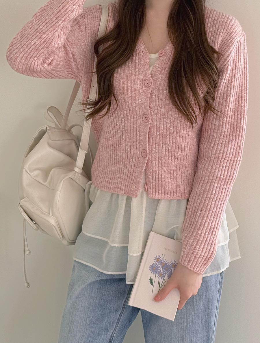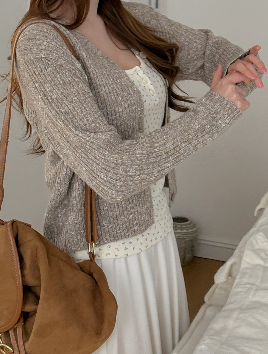 [EVELLET] Daven V-Neck Semi-Crop Knit Cardigan