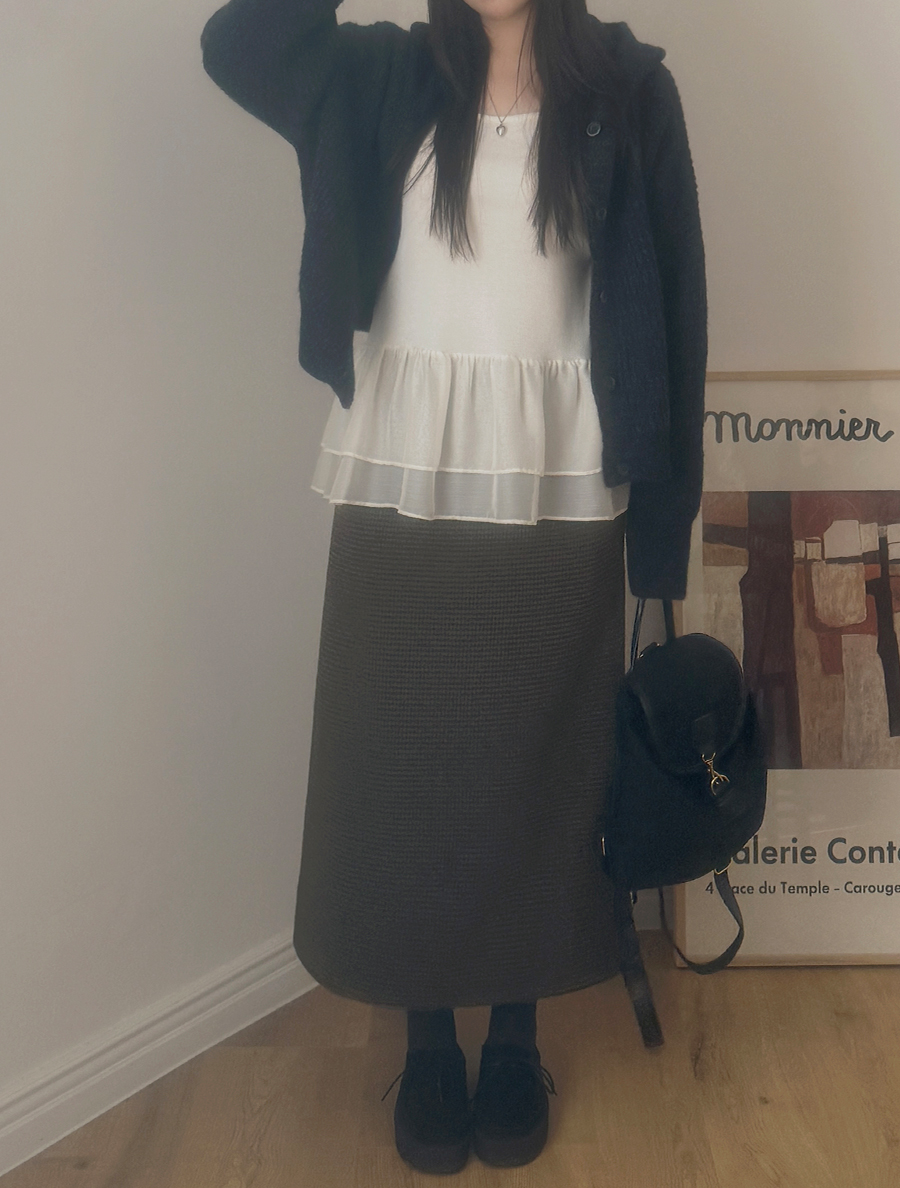 Tobua Wool Plaid Check Long Skirt